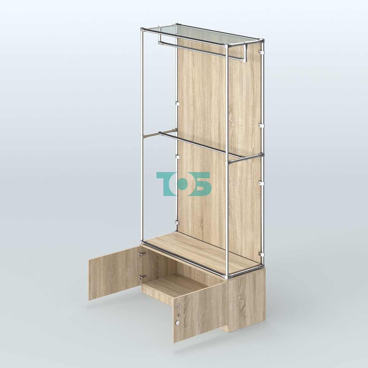 Поручни: два продольных поручня для одежды, которые обеспечивают удобство и безопасность при использовании системы.