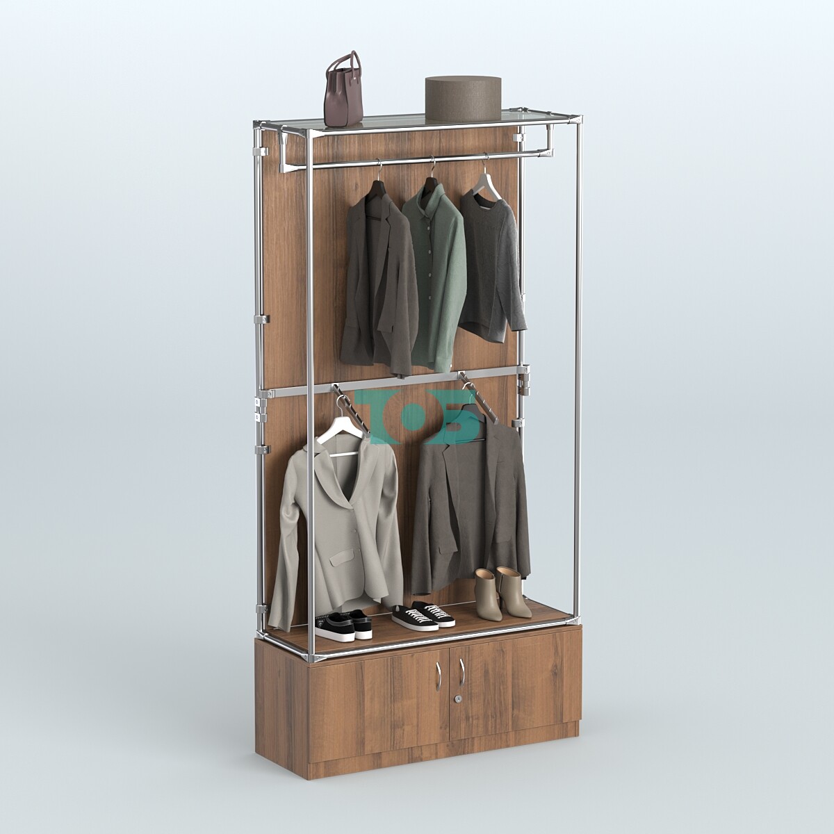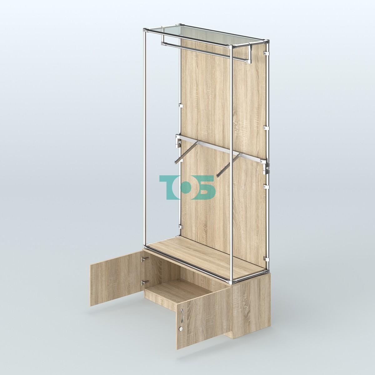 Поручни: один продольный и один пристенный поручни для одежды, которые обеспечивают удобство и безопасность при использовании системы.