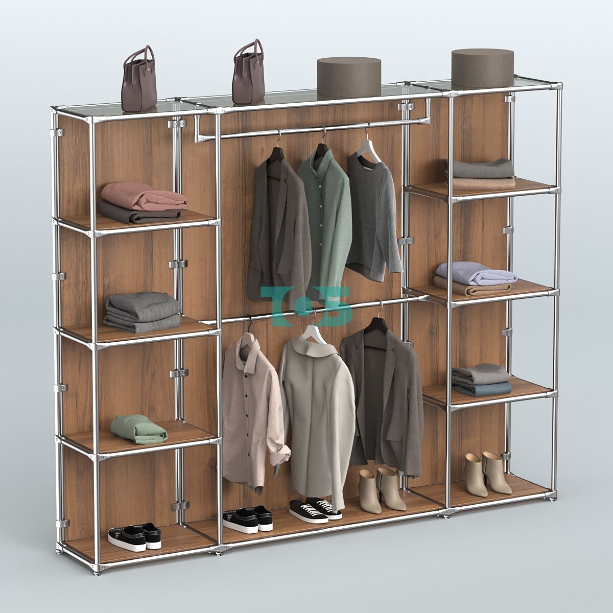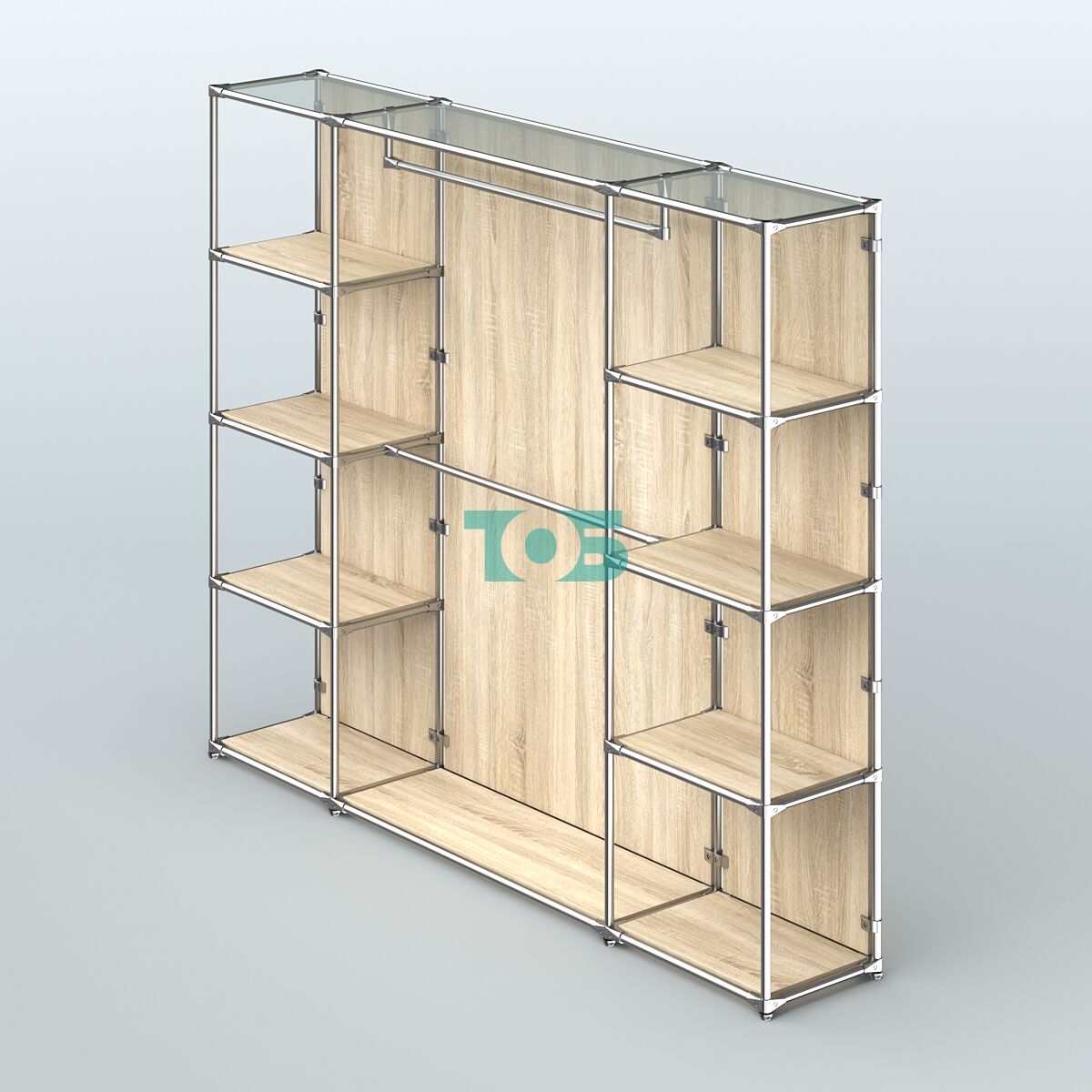 Отличия модели торговой системы ХРОМ (задняя стенка - ДСП) 2430 мм с полками ДСП и поручнями №3: