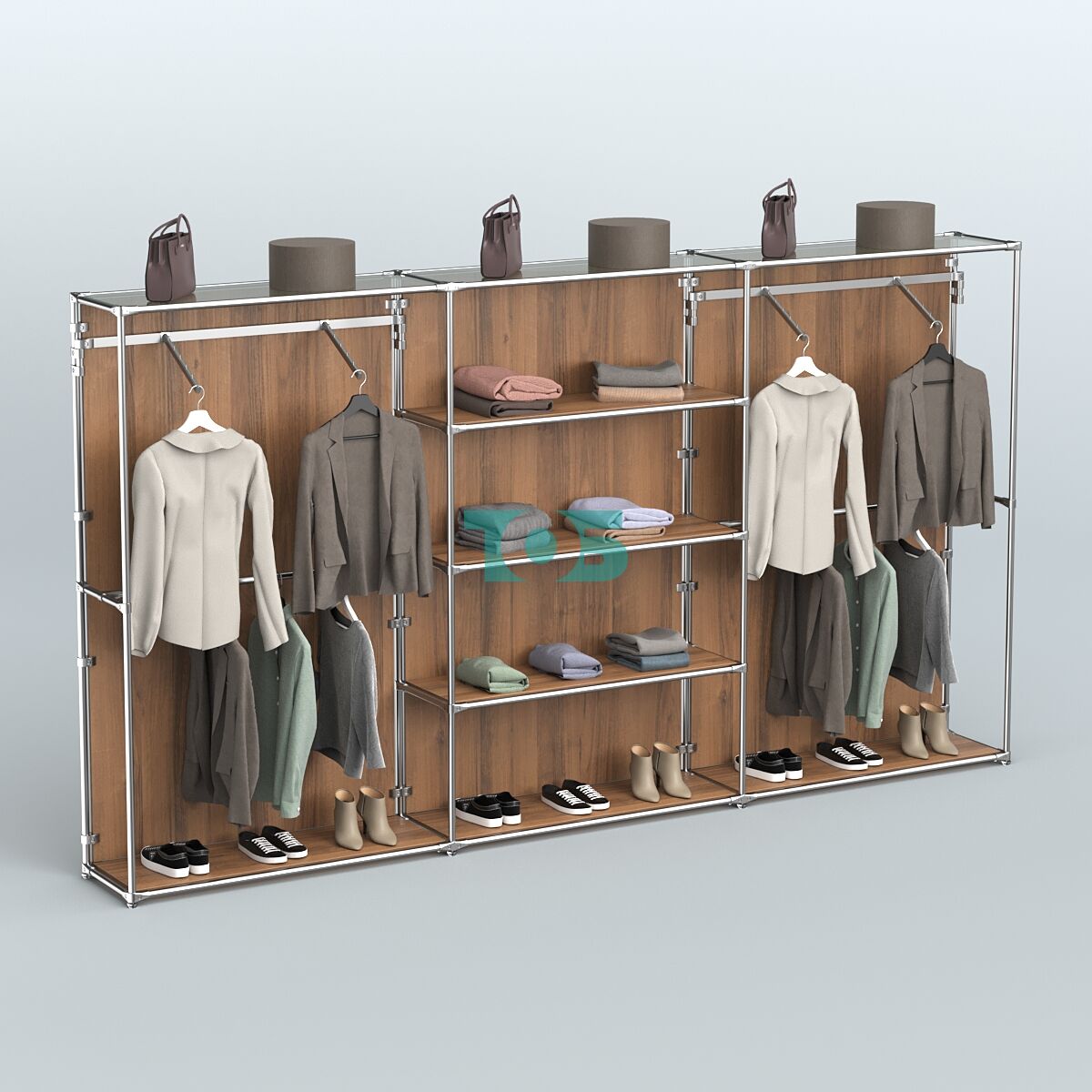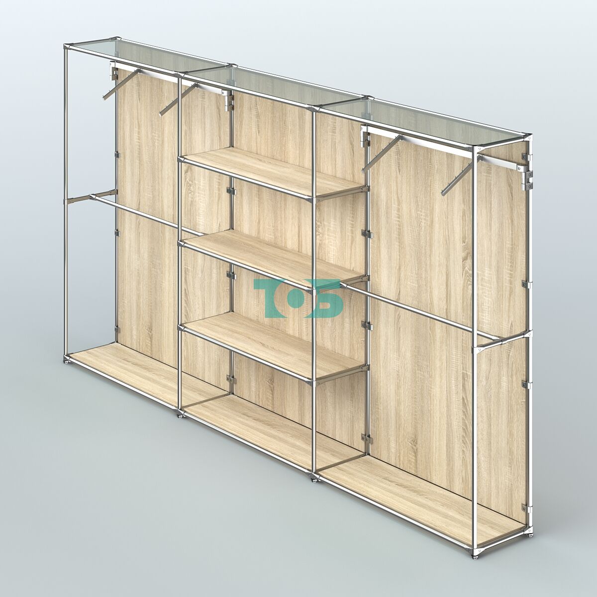 Отличия модели торговой системы ХРОМ (задняя стенка - ДСП) 3600 мм с полками ДСП и поручнями №10: