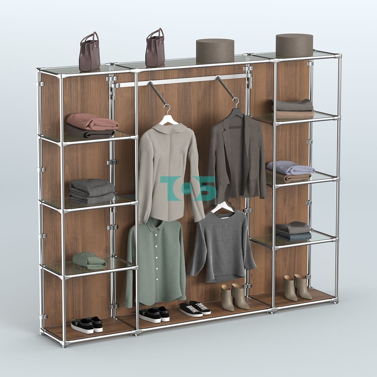Отличия модели торговой системы ХРОМ (задняя стенка - ДСП) 2430 мм с прозрачными полками и поручнями №7: