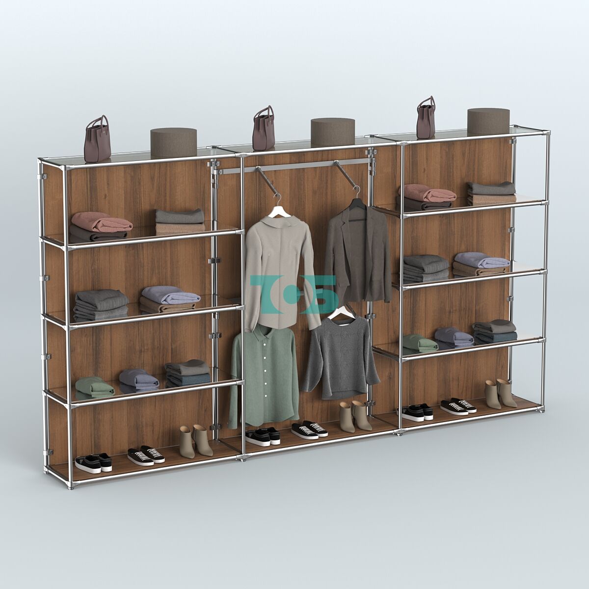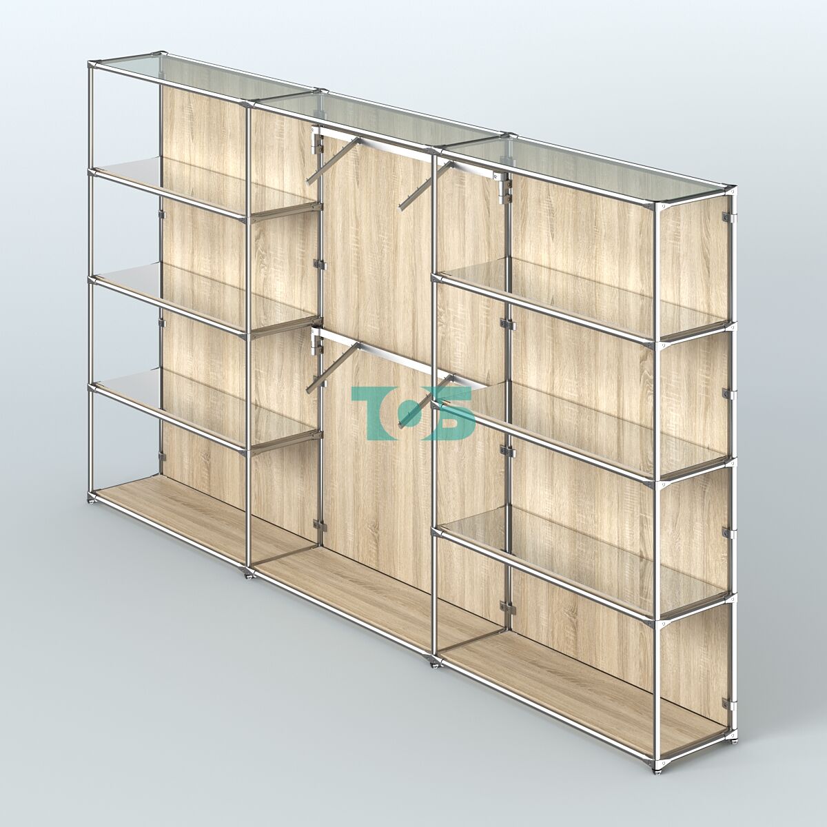 Отличия модели торговой системы ХРОМ (задняя стенка - ДСП) 3600 мм с зеркальными полками и поручнями №6: