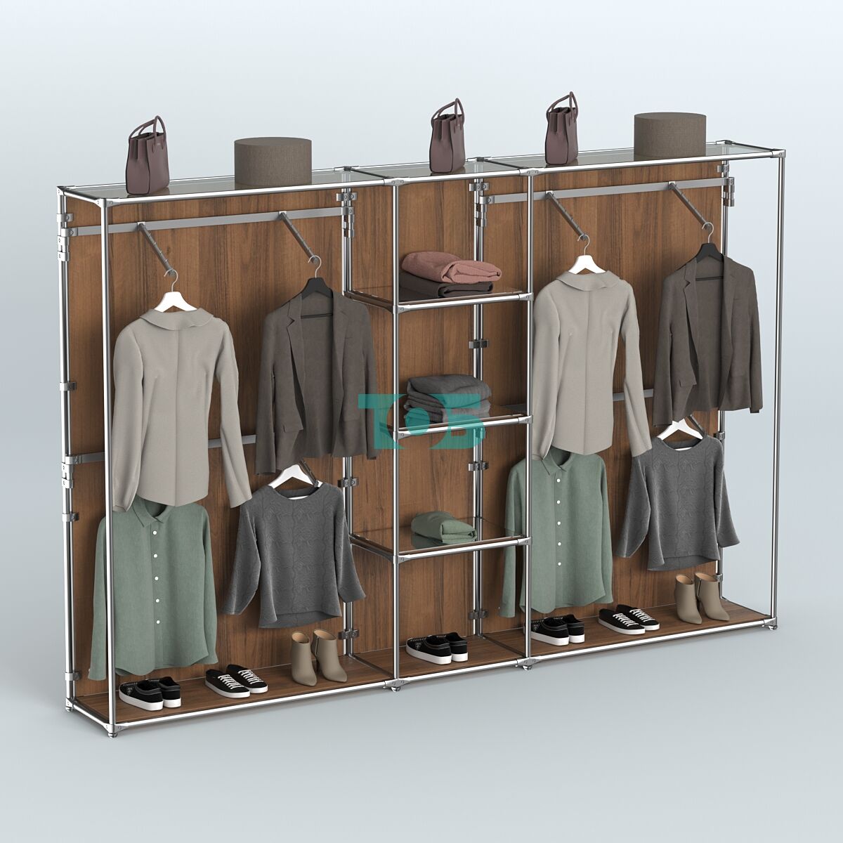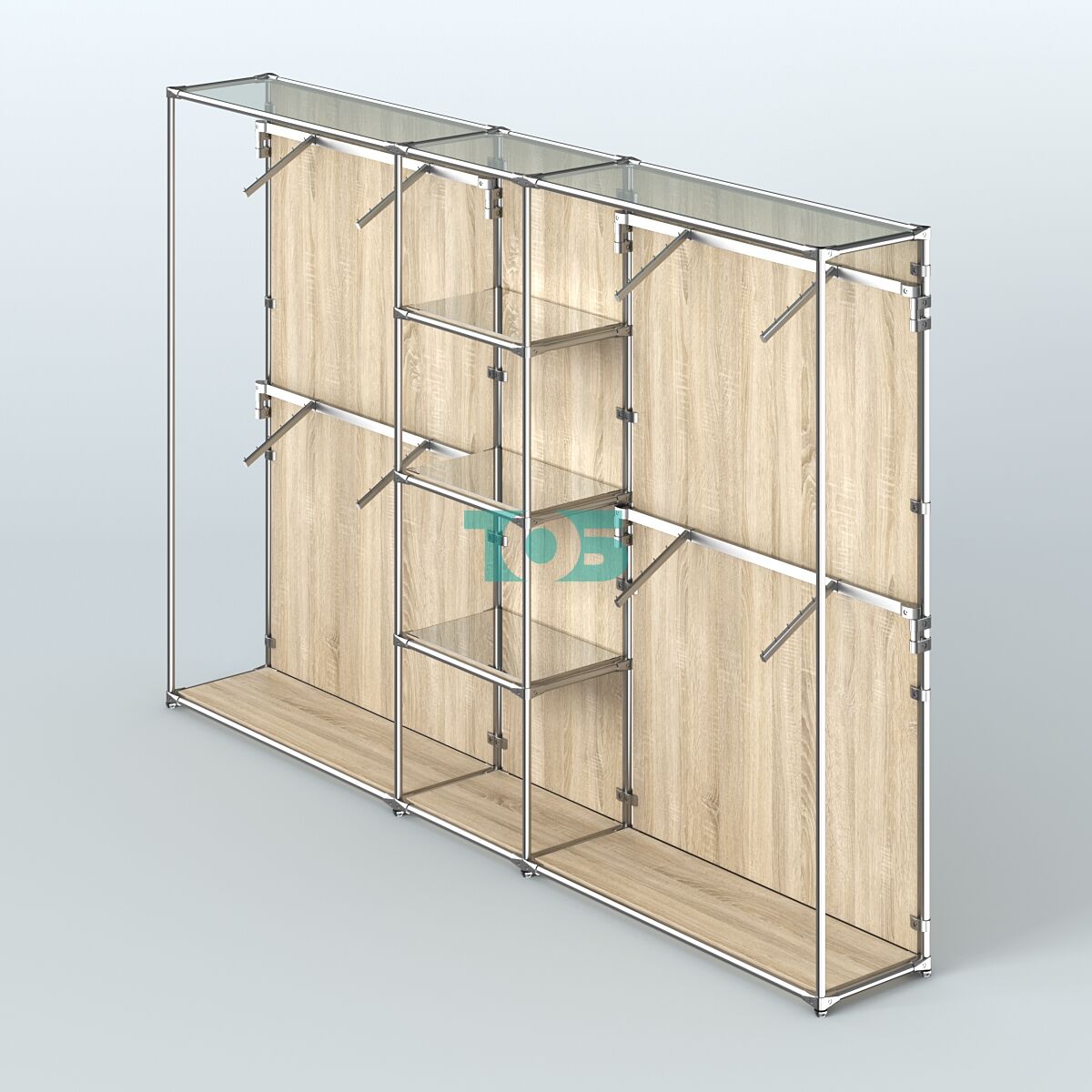 Отличия модели торговой системы ХРОМ (задняя стенка - ДСП) 3600 мм с зеркальными полками и поручнями №8: