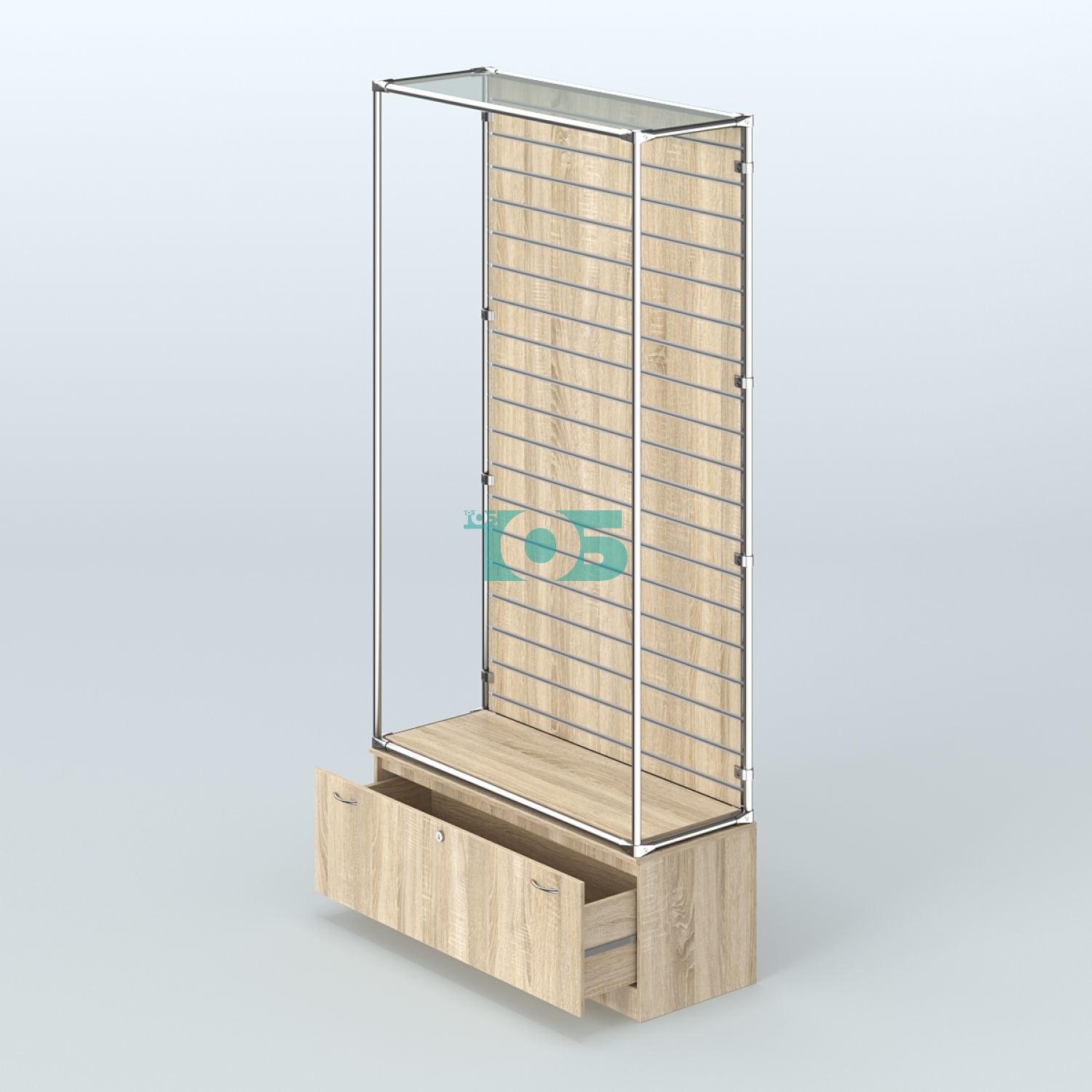 Тумба с выдвижным ящиком и замком: дополнительный элемент системы, который предоставляет дополнительное пространство для хранения товаров или рабочих материалов, повышая функциональность и удобство использования.