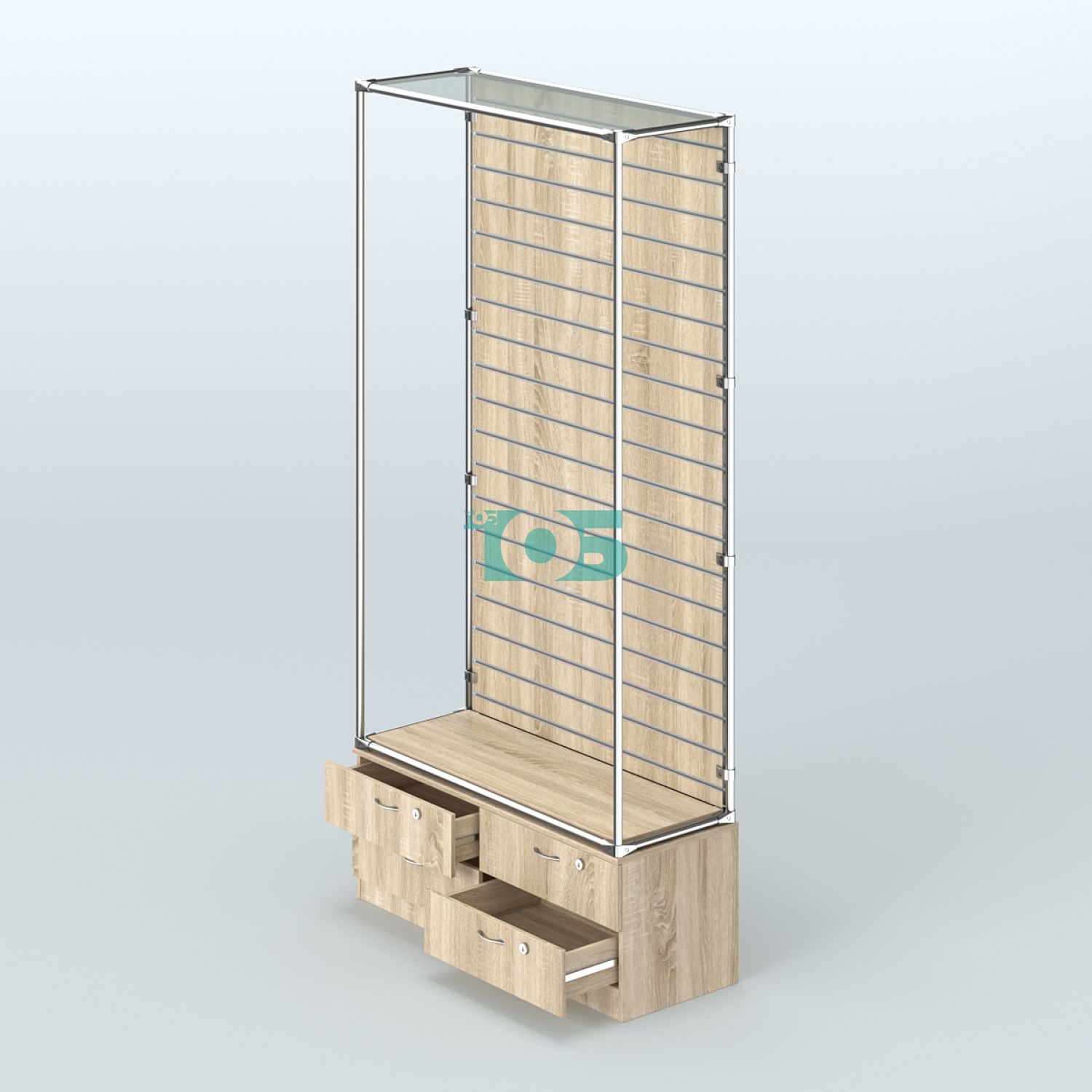 Тумба с четырьмя выдвижными ящиками и замком: дополнительный элемент системы, который предоставляет значительное пространство для хранения товаров или рабочих материалов, повышая функциональность и удобство использования.