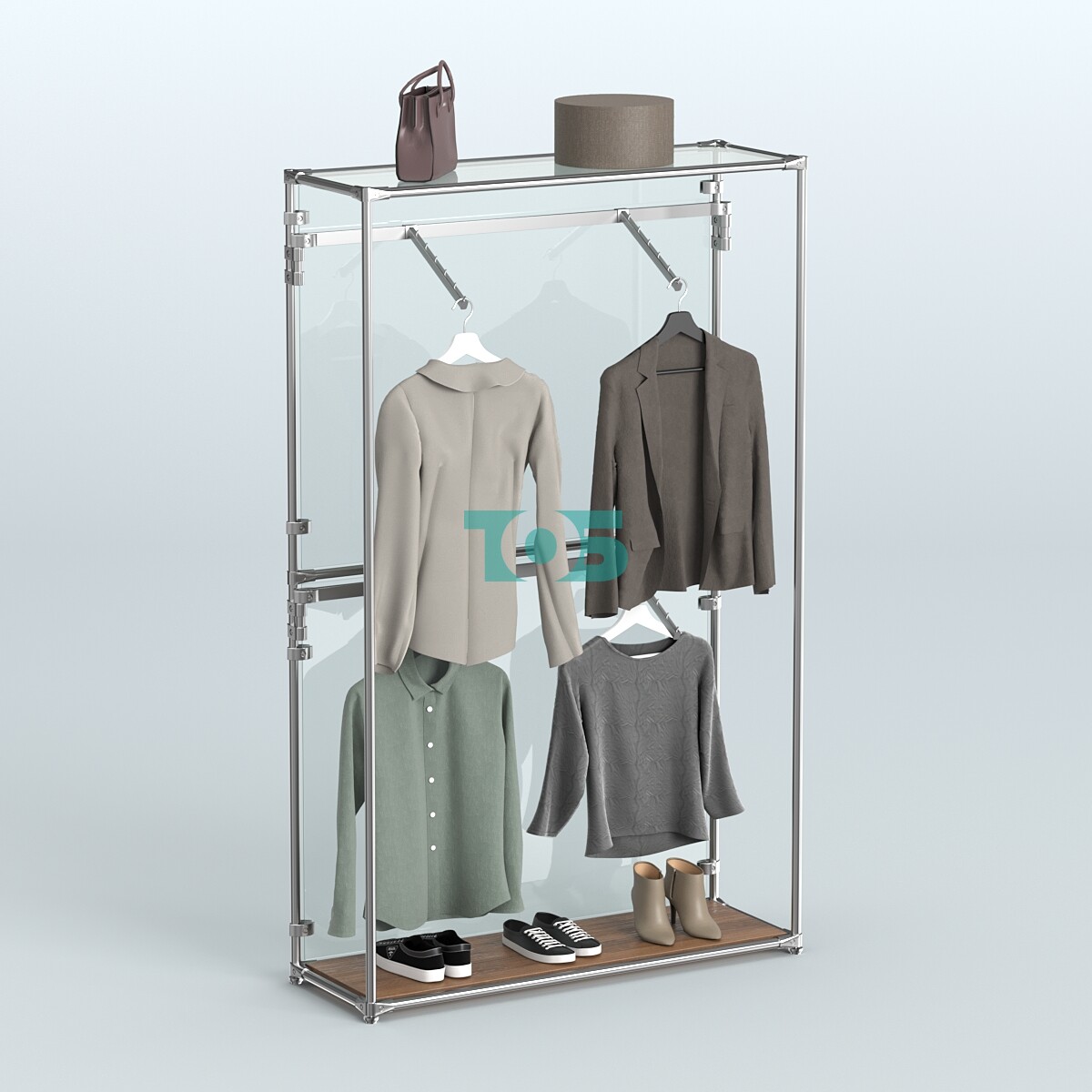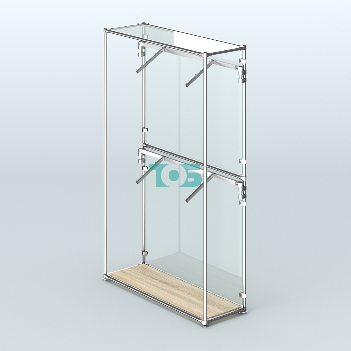 Торговая система ХРОМ с задней стенкой из стекла и поручнями №3 представляет собой современное и функциональное решение для организации пространства в магазинах и торговых залах. Благодаря качественным материалам и продуманной конструкции, система обеспечивает удобство использования и эстетичный внешний вид.