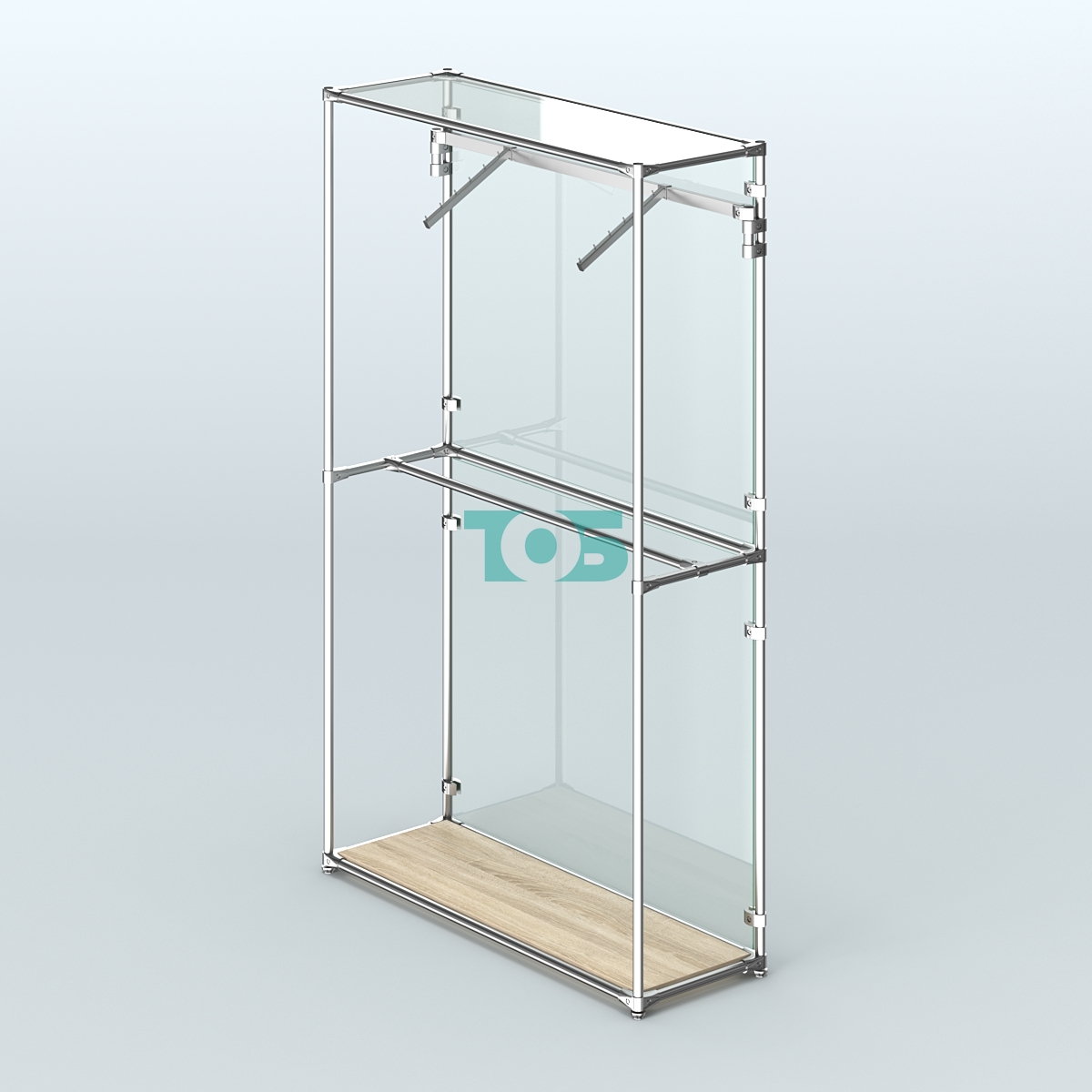 Торговая система ХРОМ с задней стенкой из стекла и поручнями №4 представляет собой стильное и функциональное решение для организации пространства в магазинах и торговых залах. Благодаря качественным материалам и продуманной конструкции, система обеспечивает удобство использования и эстетичный внешний вид.