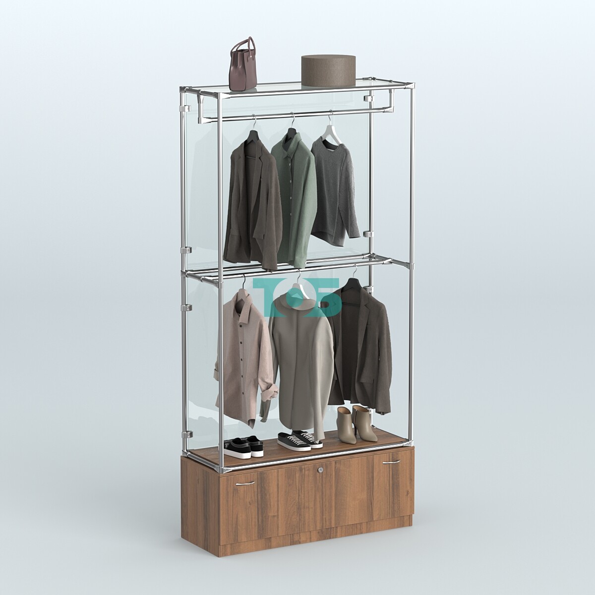 Задняя стенка: также изготовлена из прозрачного материала, что способствует визуальному расширению пространства и облегчает доступ к содержимому системы с разных сторон.