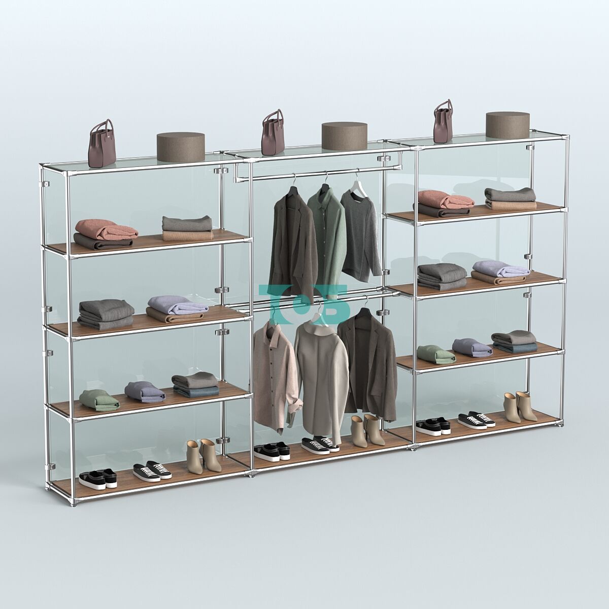 - в центральном блоке два продольный поручня для одежды;