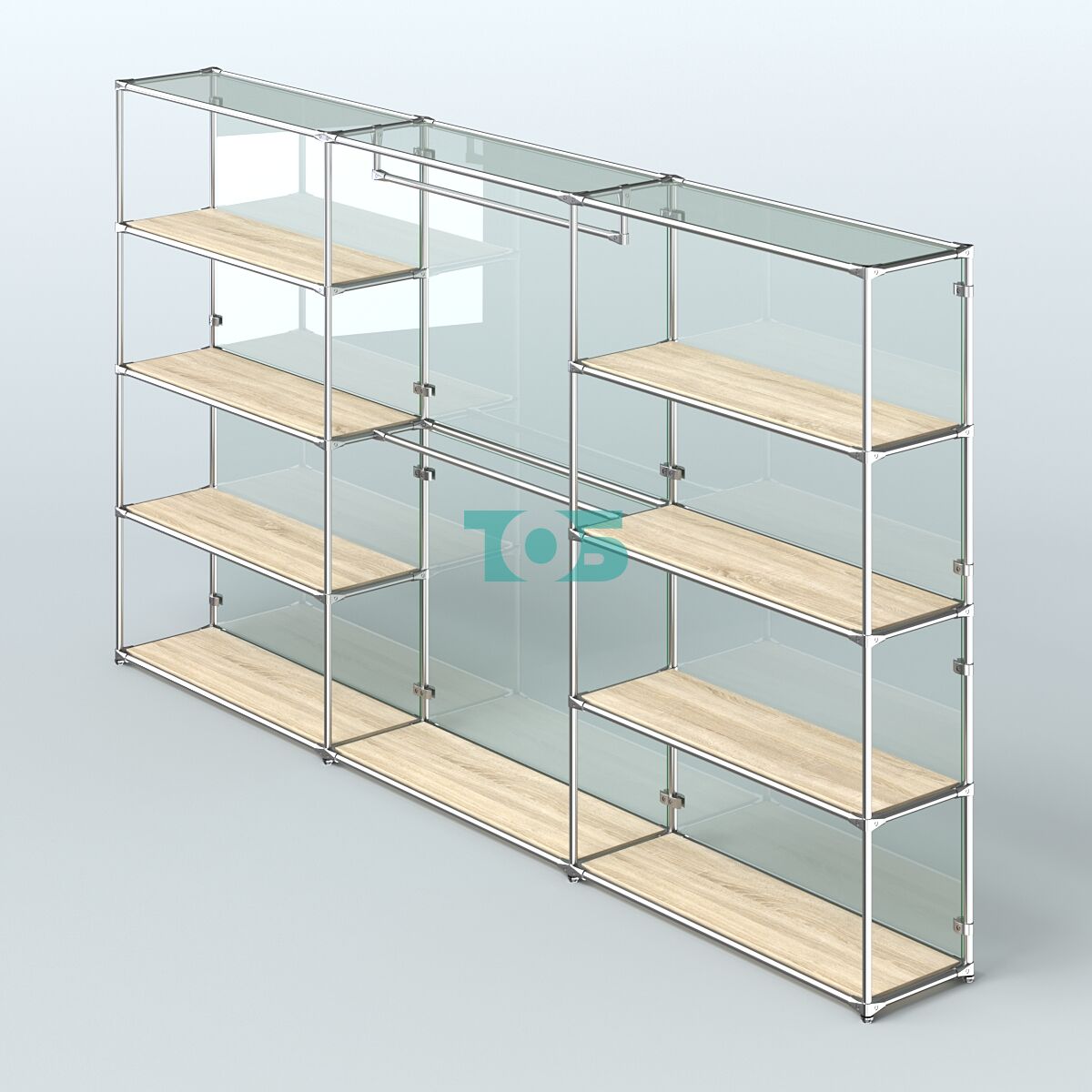 Отличия модели торговой системы ХРОМ (задняя стенка - стекло) 3600 мм с полками ДСП и поручнями №1:
