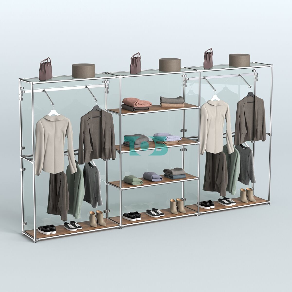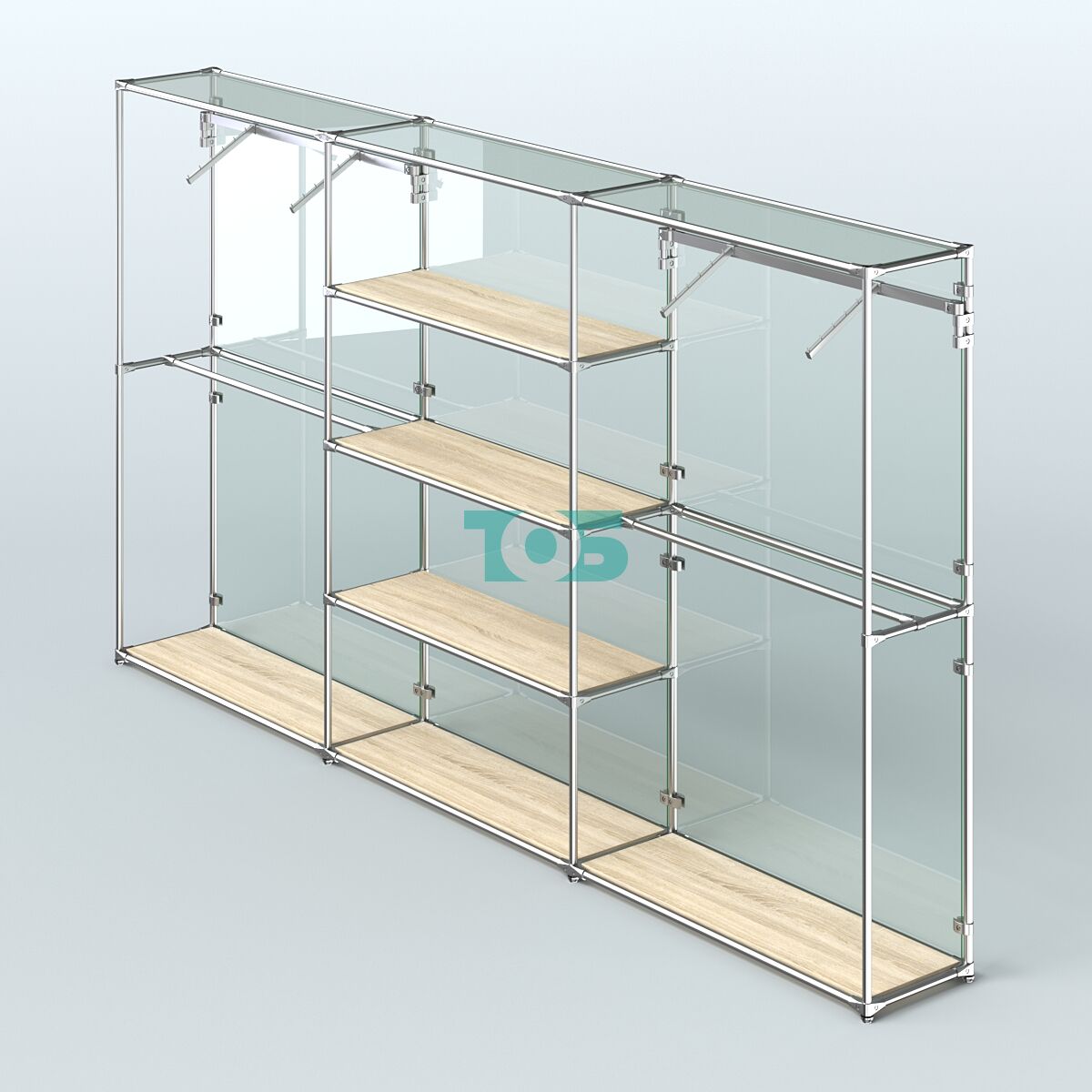 Отличия модели торговой системы ХРОМ (задняя стенка - стекло) 3600 мм с полками ДСП и поручнями №10: