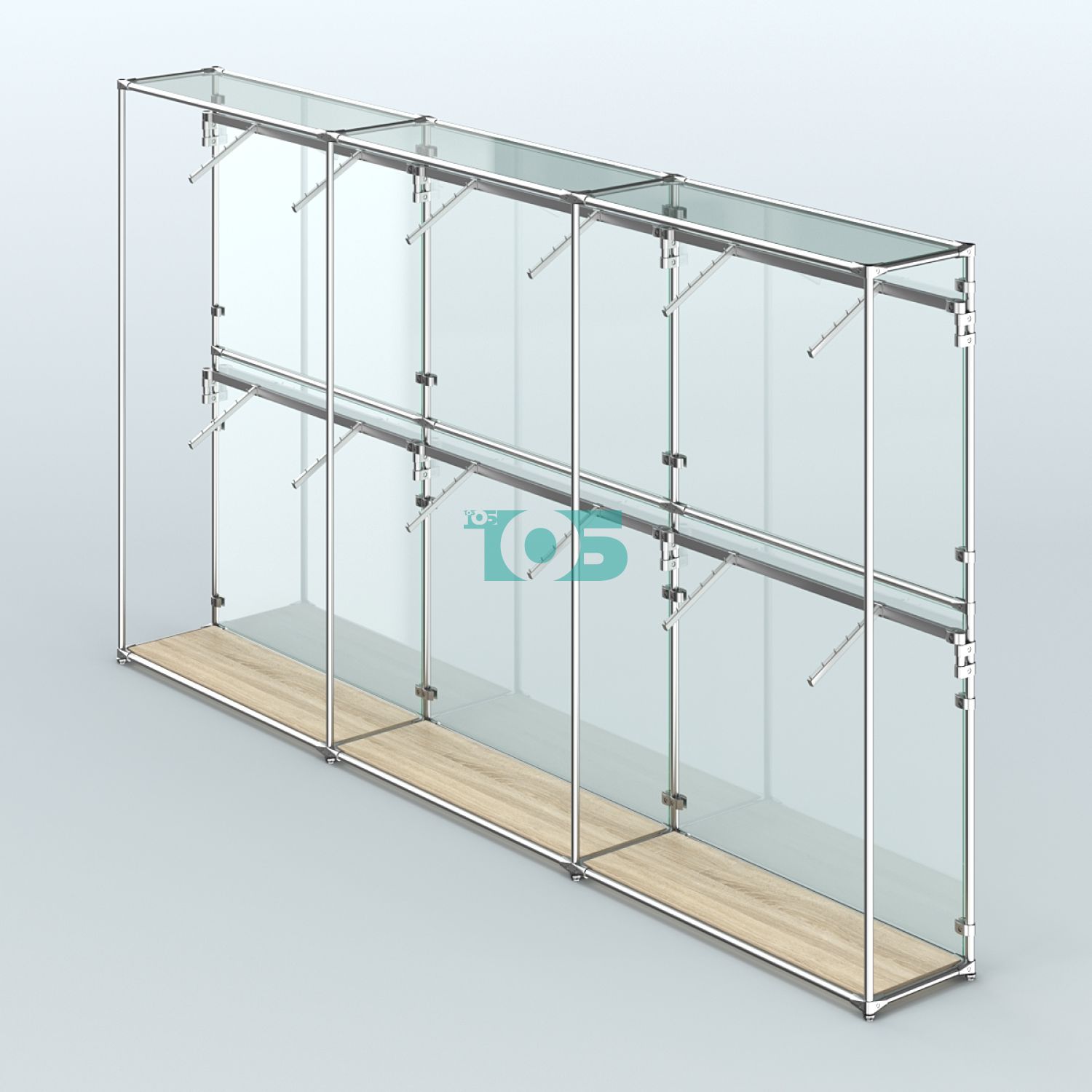 Торговая система ХРОМ с задней стенкой из стекла и поручнями №4 представляет собой эффективное и стильное решение для организации пространства в торговых залах, офисах и других помещениях. Благодаря качественным материалам и продуманной конструкции система обеспечивает удобство использования и эстетически привлекательный вид.