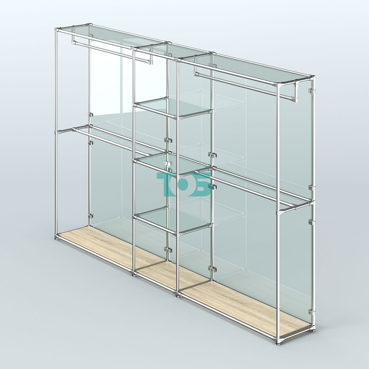 Отличия модели торговой системы ХРОМ (задняя стенка - стекло) 3030 мм с прозрачными полками и поручнями №4: