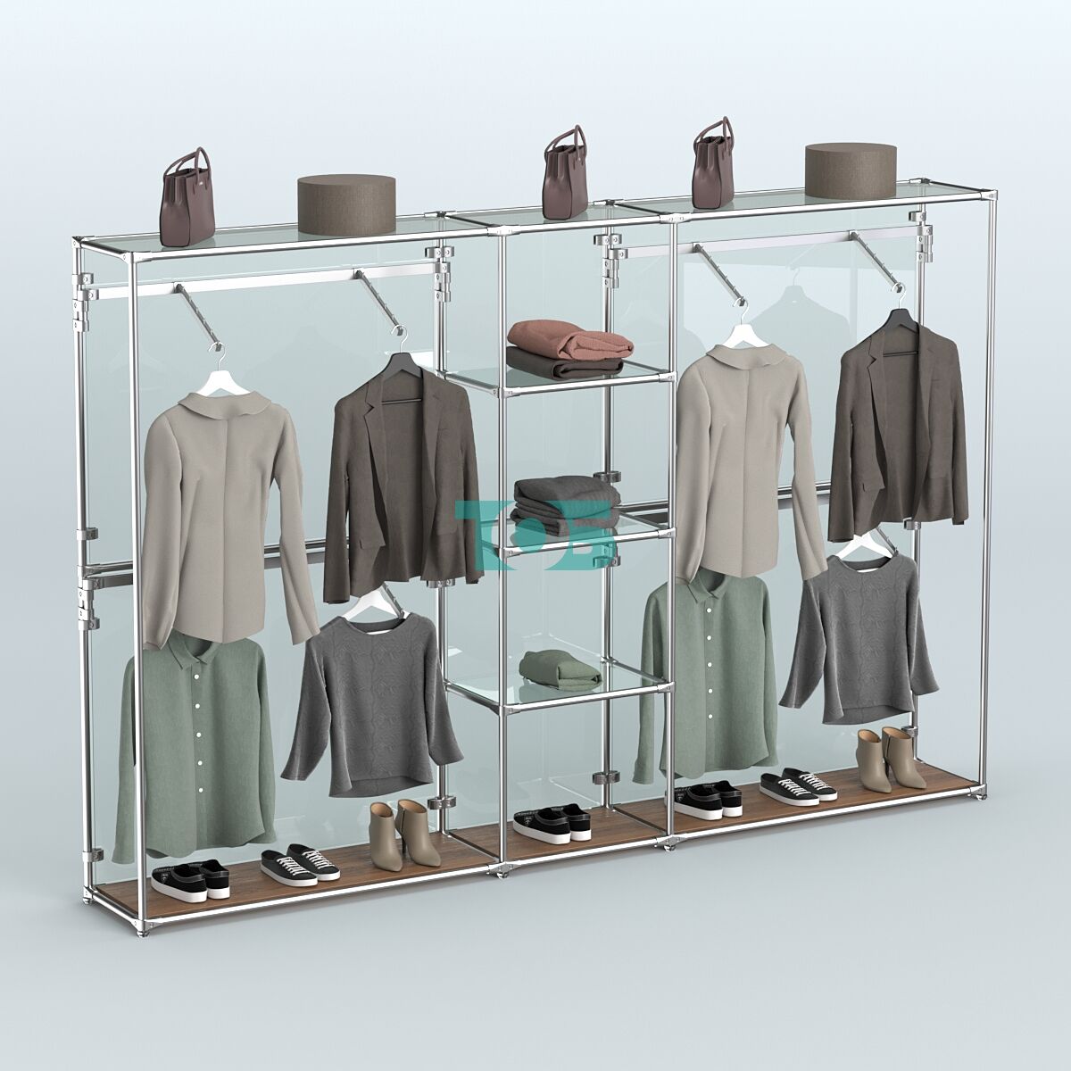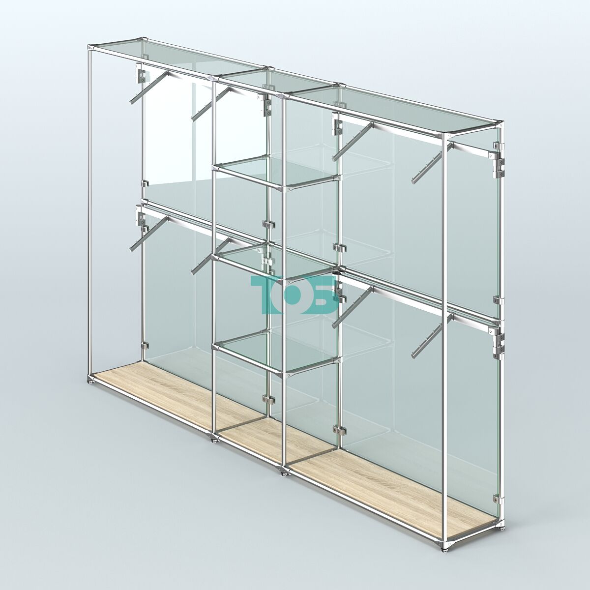 Отличия модели торговой системы ХРОМ (задняя стенка - стекло) 3030 мм с прозрачными полками и поручнями №8: