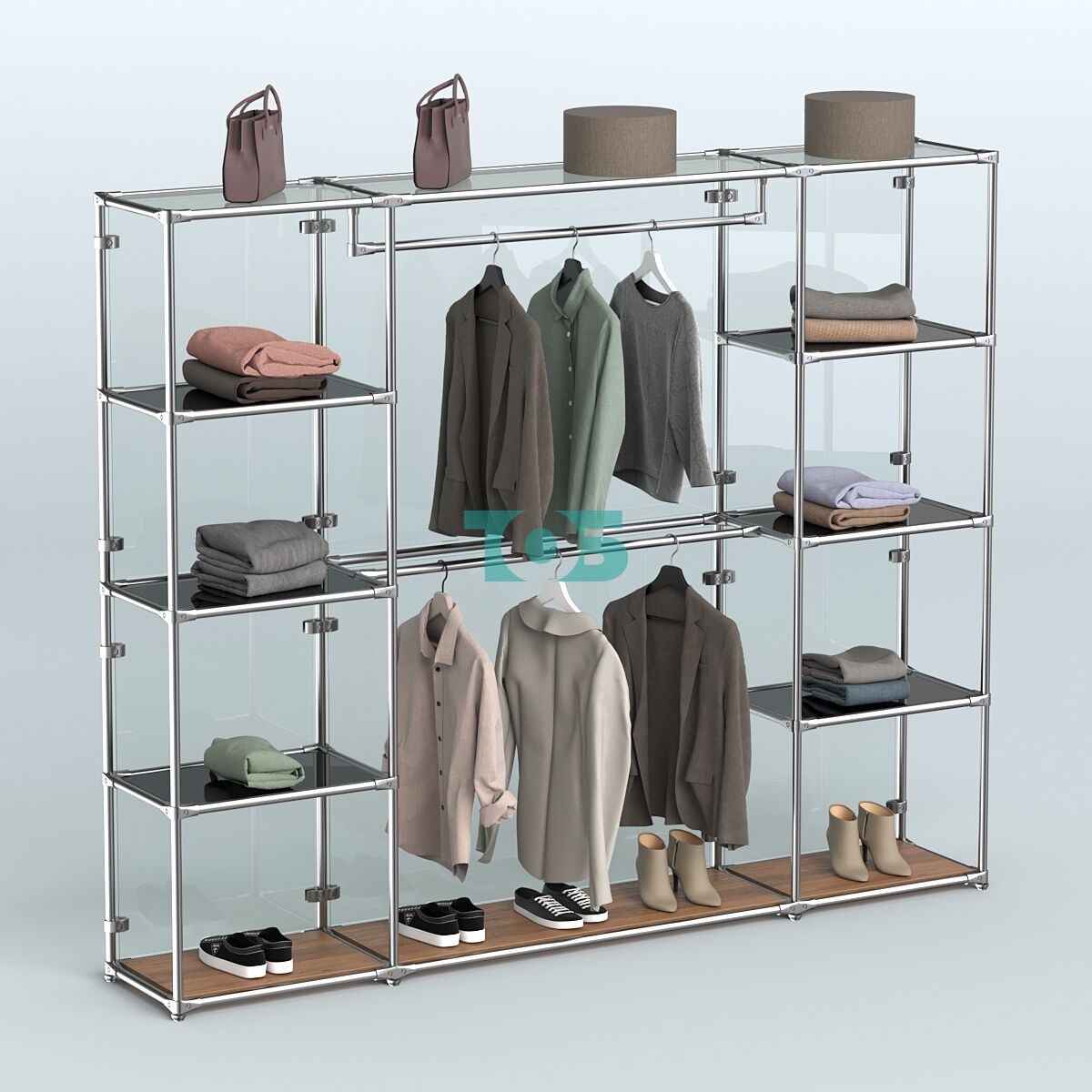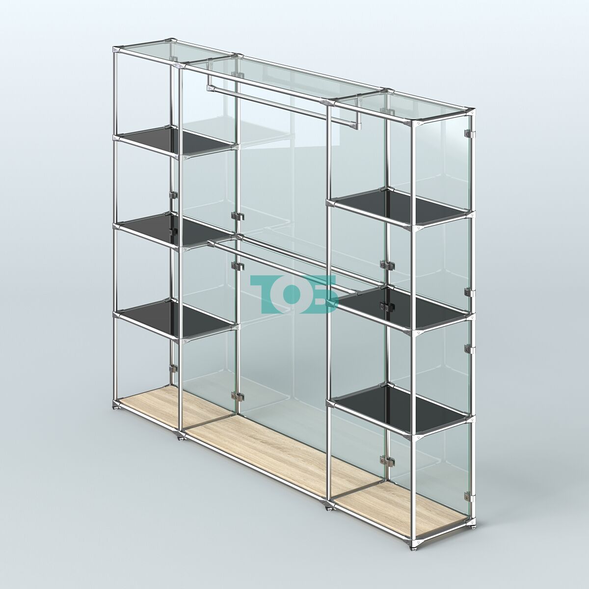Отличия модели торговой системы ХРОМ (задняя стенка - стекло) 2430 мм с тонированными полками и поручнями №3: