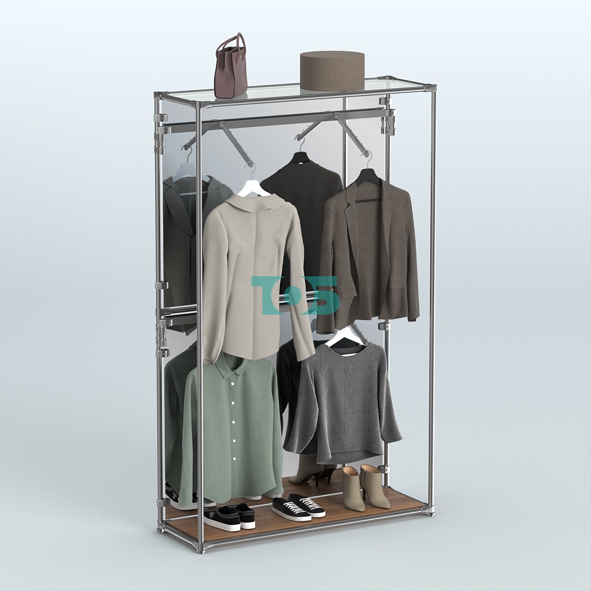 Поручни: два пристенных поручня предназначены для удобства размещения одежды и других предметов, что делает систему многофункциональной.