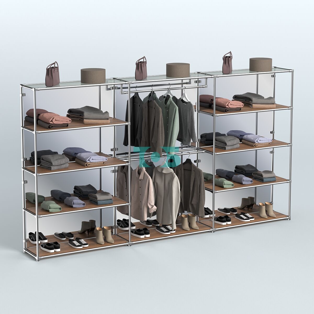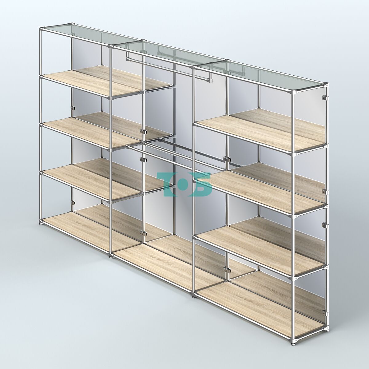 Отличия модели торговой системы ХРОМ (задняя стенка - зеркало) 3600 мм с полками ДСП и поручнями №1:
