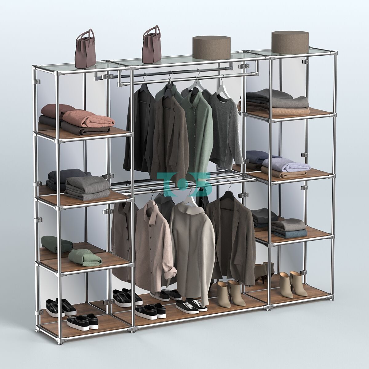 - в центральном блоке два продольный поручня для одежды;