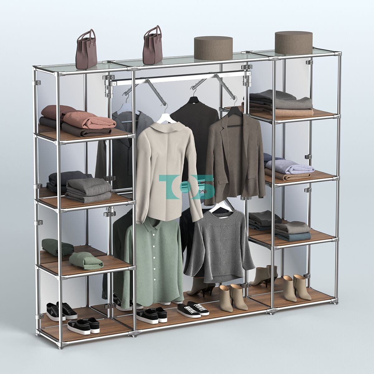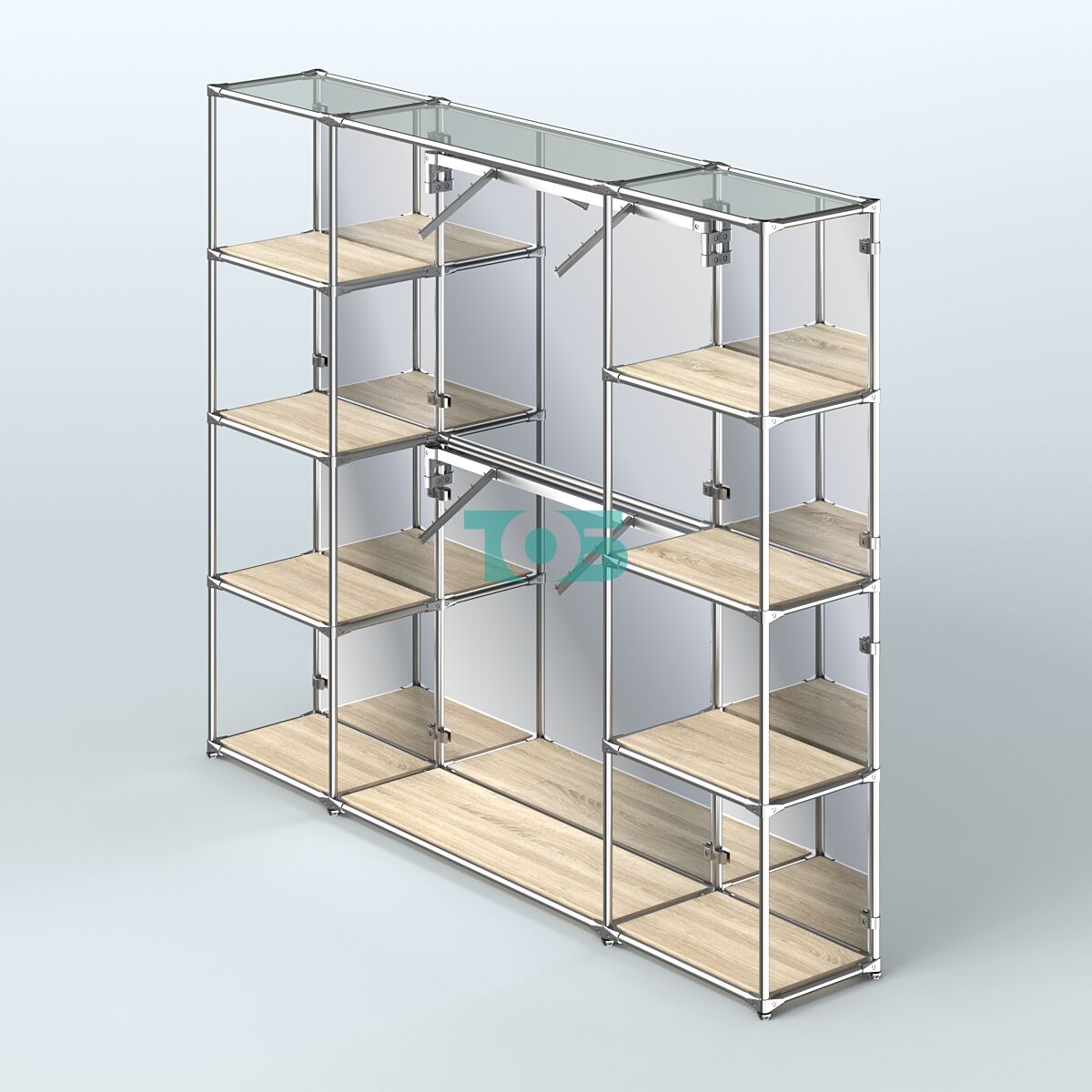 Отличия модели торговой системы ХРОМ (задняя стенка - зеркало) 2430 мм с полками ДСП и поручнями №7: