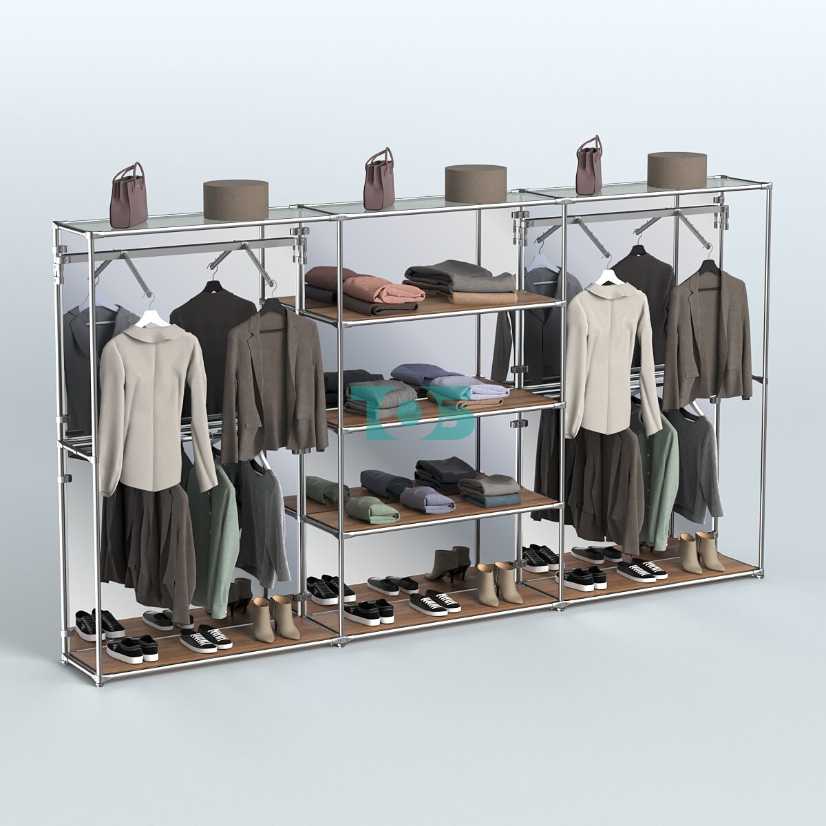 Отличия модели торговой системы ХРОМ (задняя стенка - зеркало) 3600 мм с полками ДСП и поручнями №10: