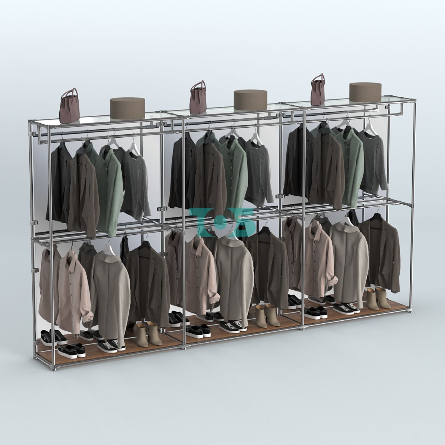 Поручни: система оснащена шестью продольными поручнями для одежды, что обеспечивает удобство хранения и доступа к вещам.