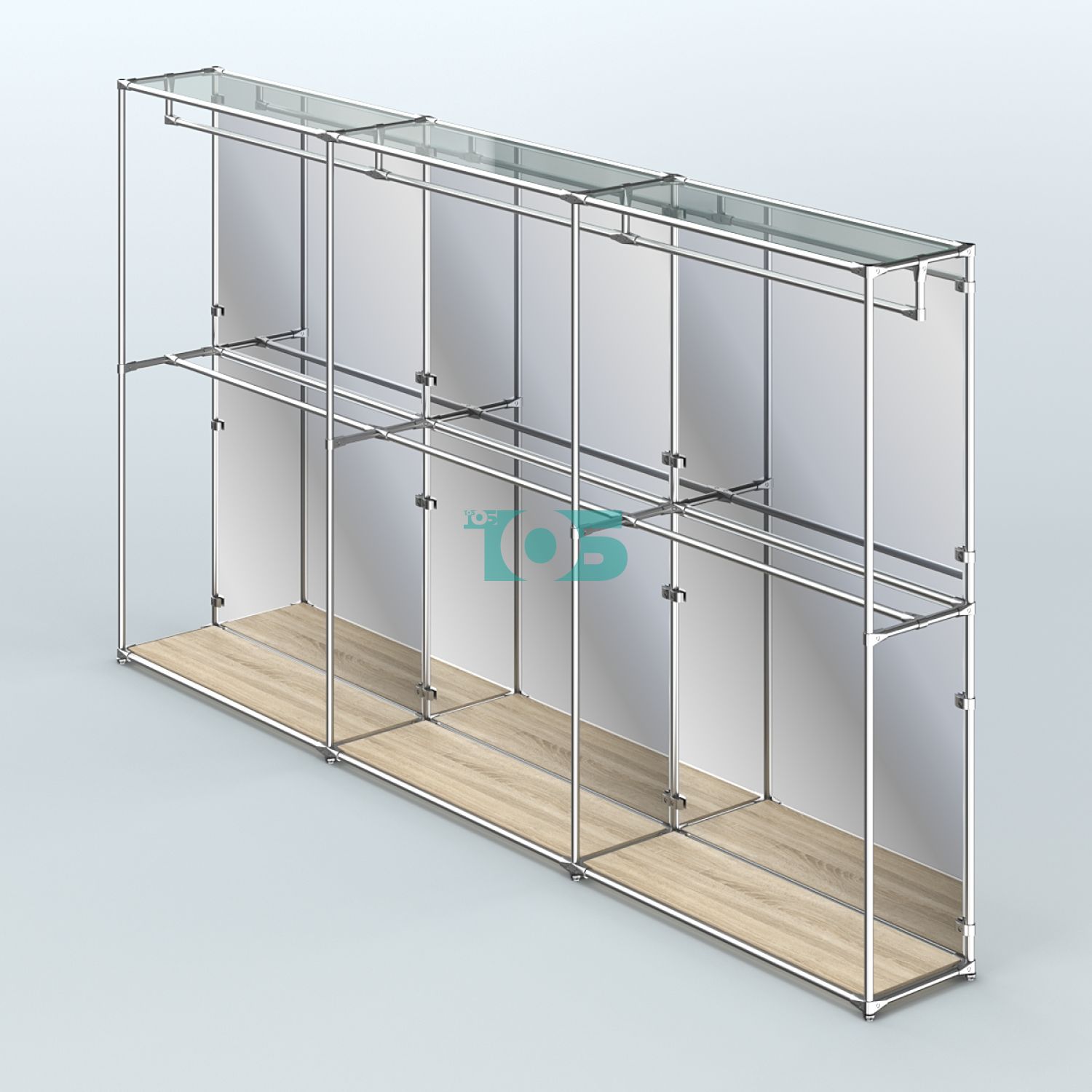 Торговая система ХРОМ с задней стенкой-зеркалом и поручнями №1 представляет собой стильное и функциональное решение для организации пространства в торговых залах, офисах и других помещениях. Благодаря своему дизайну и качественным материалам, система обеспечивает удобство использования и долговечность.