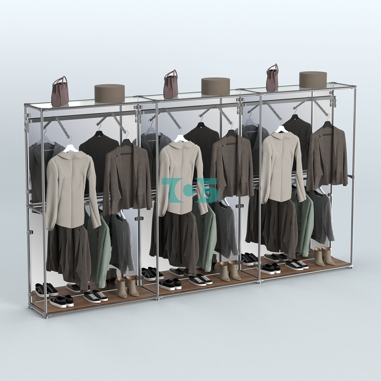 Торговая система ХРОМ с задней стенкой-зеркалом и поручнями №7 представляет собой стильное и функциональное решение для организации пространства в торговых залах, офисах и других помещениях. Благодаря качественным материалам и продуманной конструкции система обеспечивает удобство использования и долговечность.