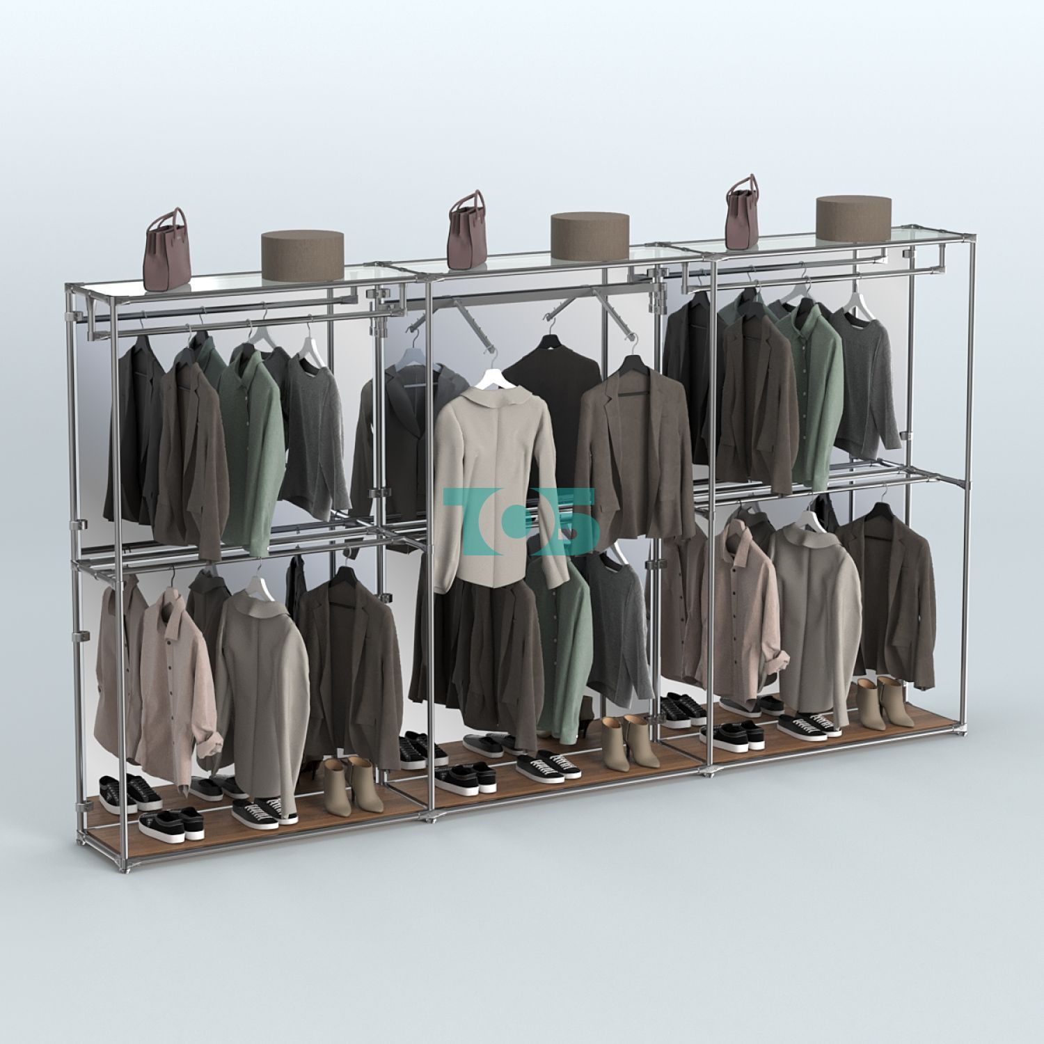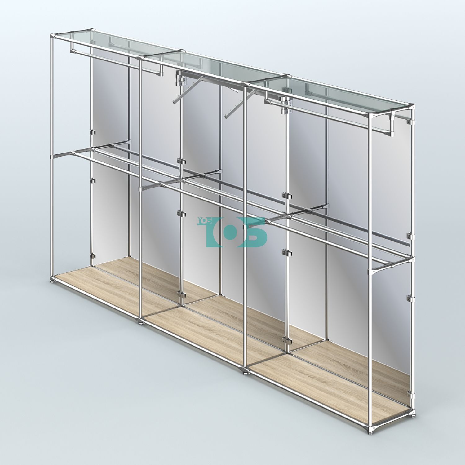 Торговая система ХРОМ с задней стенкой-зеркалом и поручнями №8 представляет собой элегантное и функциональное решение для организации пространства в торговых залах, офисах и других помещениях. Благодаря качественным материалам и продуманной конструкции система обеспечивает удобство использования и долговечность.