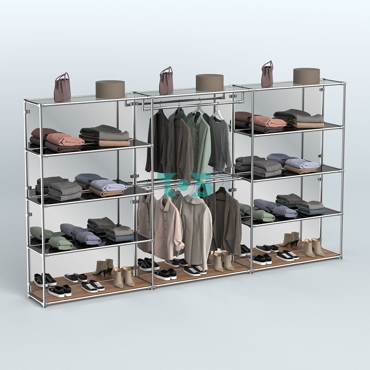 - в центральном блоке два продольный поручня для одежды;