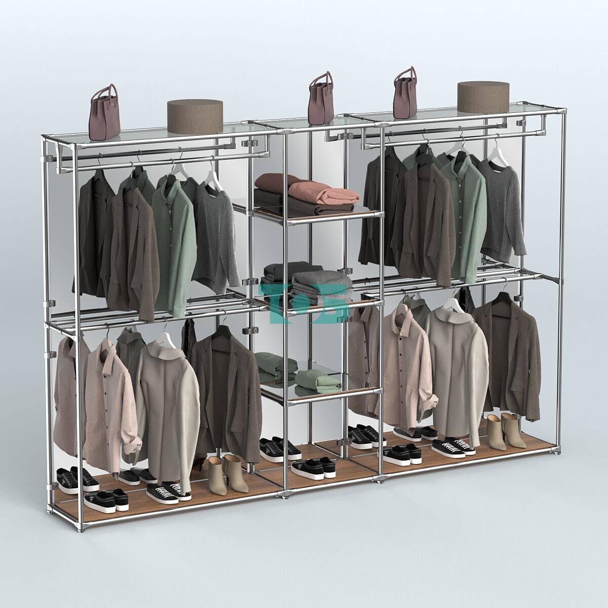 Отличия модели торговой системы ХРОМ (задняя стенка - зеркало) 3600 мм с зеркальными полками и поручнями №4: