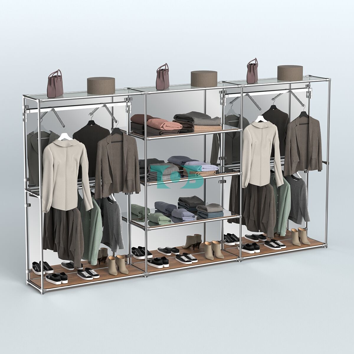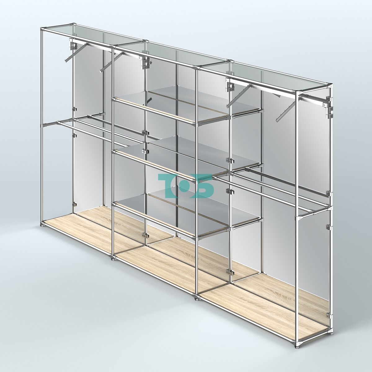 Отличия модели торговой системы ХРОМ (задняя стенка - зеркало) 3600 мм с зеркальными полками и поручнями №10: