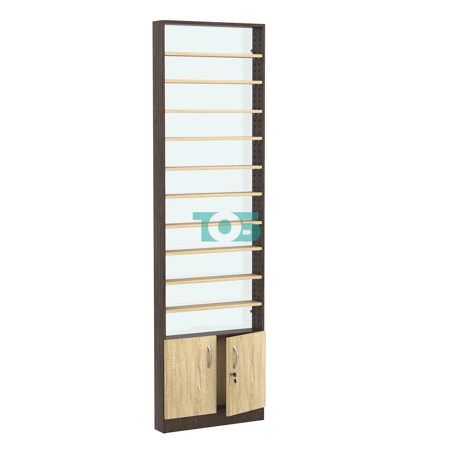 • Стеллаж из ДСП с 10-ю полками 100x600 мм серии LEVEL-10 №1-1 (З/C - СТЕКЛО), Дуб Венге + Дуб Сонома