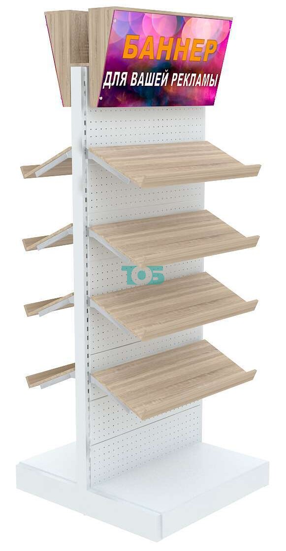Отличия модели высокого островного стеллажа с лайт-боксом и наклонными полками №3: