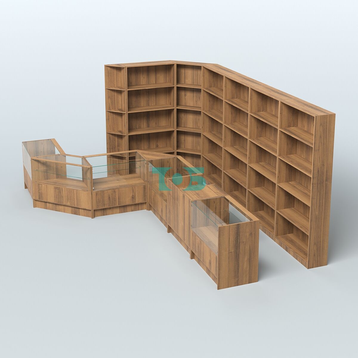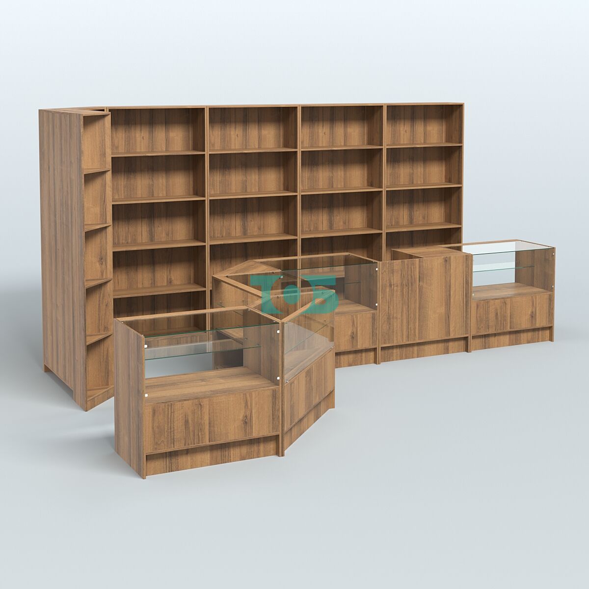 Стеллажи: за спиной продавца стоят стеллажи высотой 2100 мм, что позволяет эффективно использовать вертикальное пространство для размещения товаров.