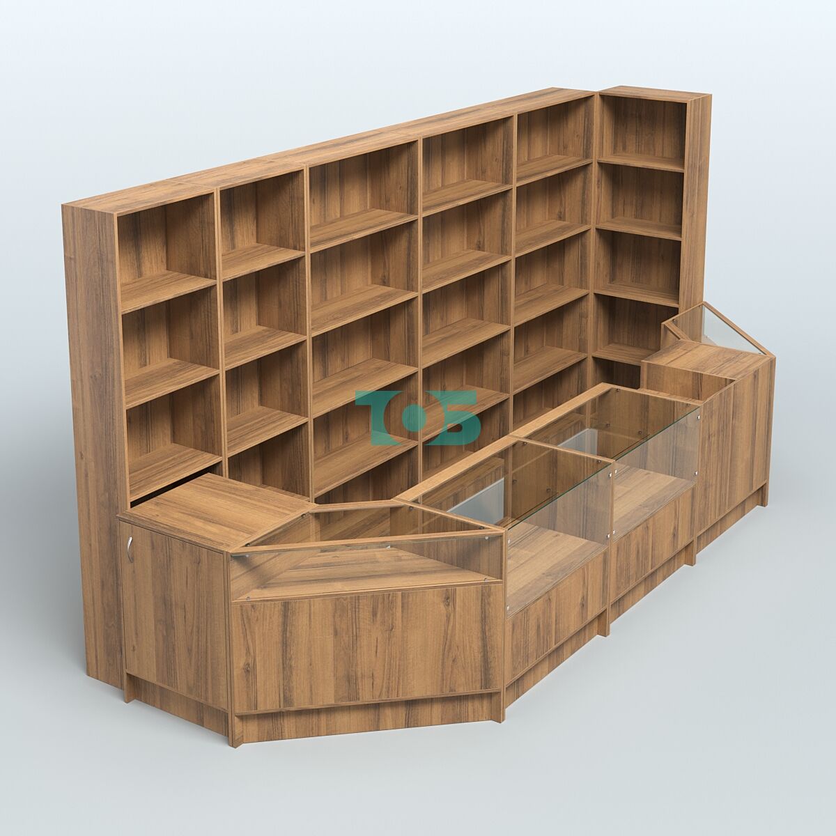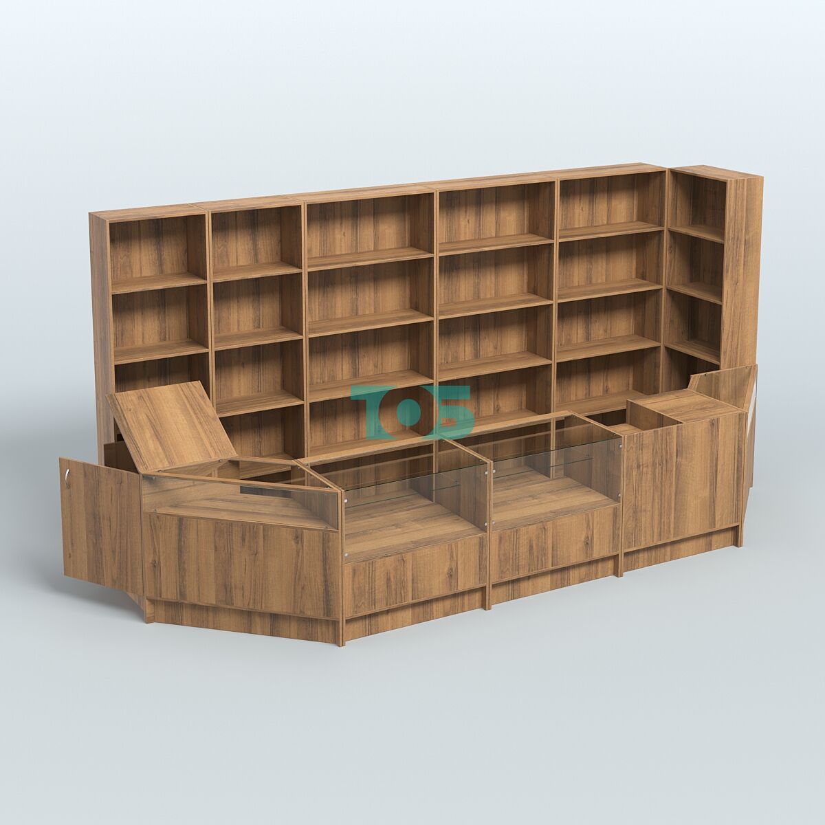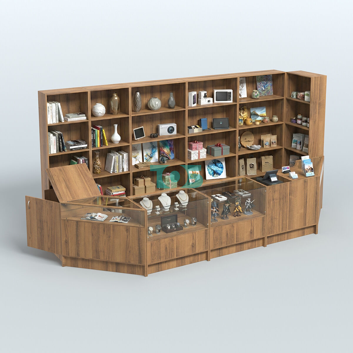 Витрины: со стороны продавца витрины открытые, что обеспечивает хороший обзор товаров и облегчает взаимодействие с покупателями.