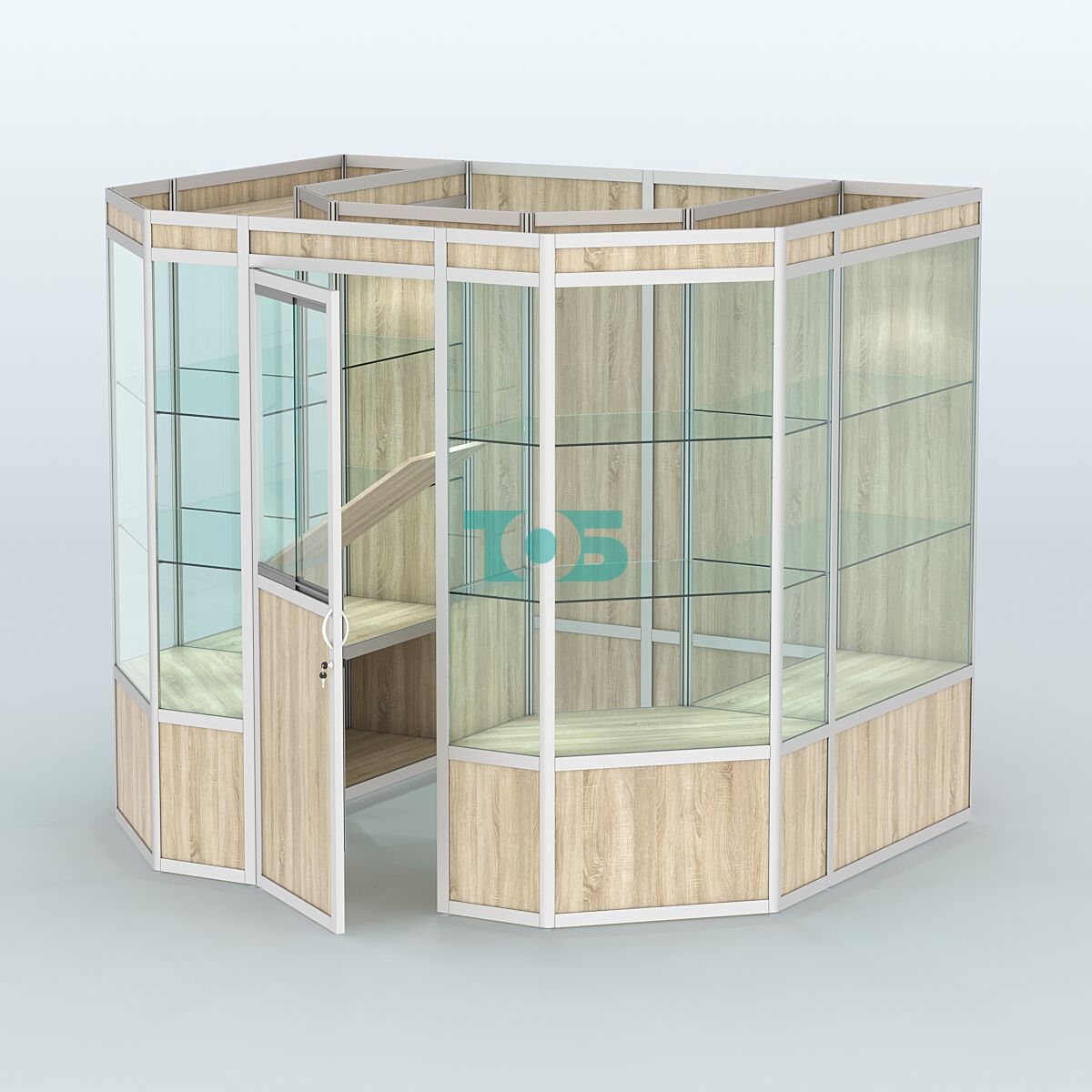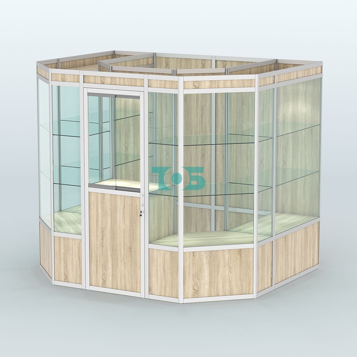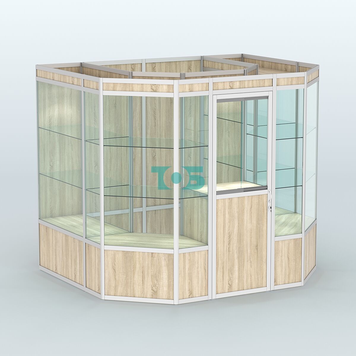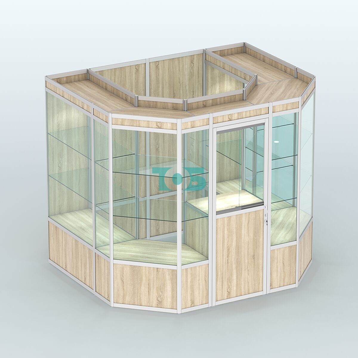 - Откидная крышка из ДСП 16мм под кассу, также имеются стеклянные дверки в распашной двери павильона, используемые в качестве окна выдачи.