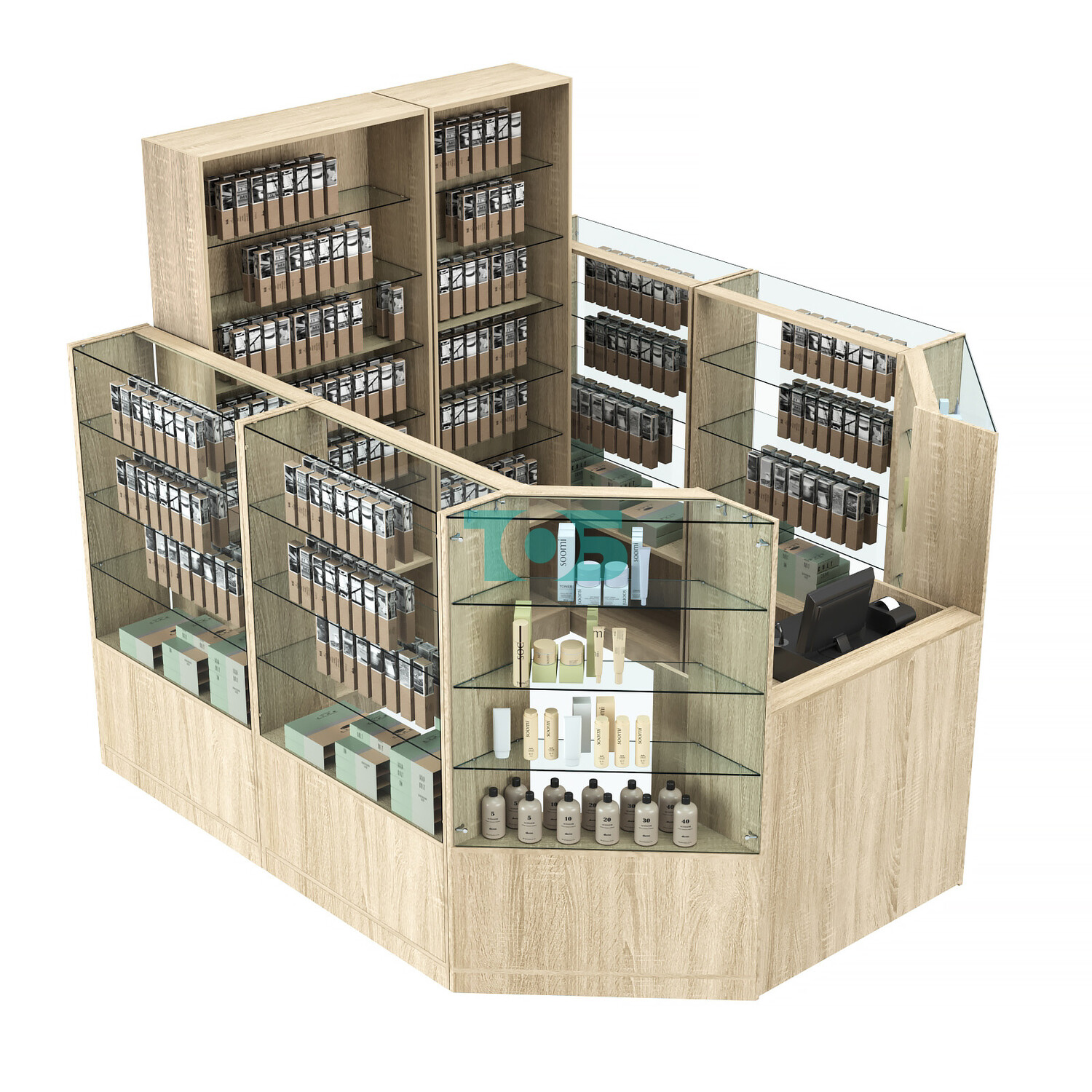 Габаритные размеры: могут быть изменены исходя из стандартных блоков витрин, что даёт возможность адаптировать павильон под конкретные условия помещения.