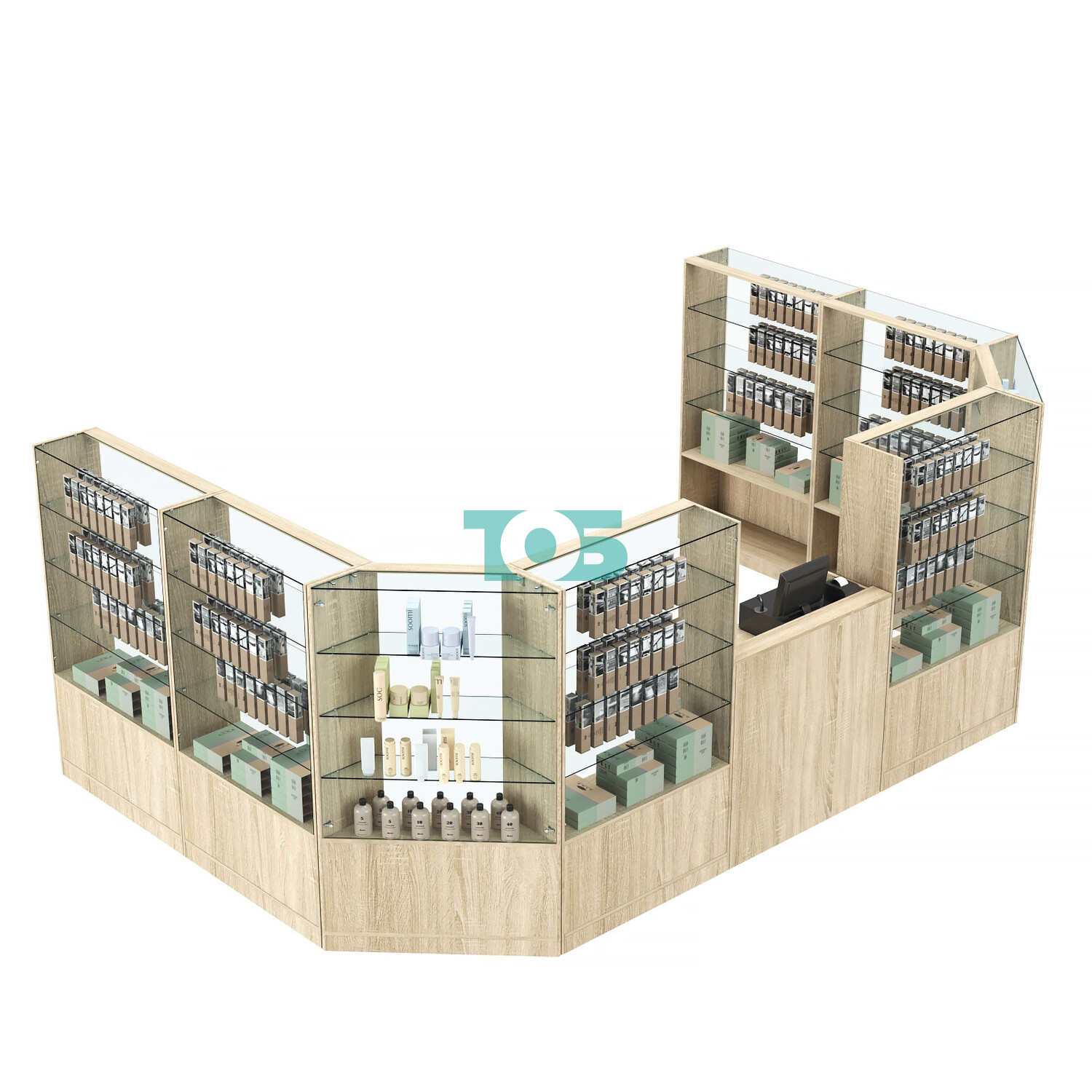 Дополнительные возможности: за спиной продавца можно поставить стеллажи, что расширяет возможности для хранения товаров и организации рабочего пространства.