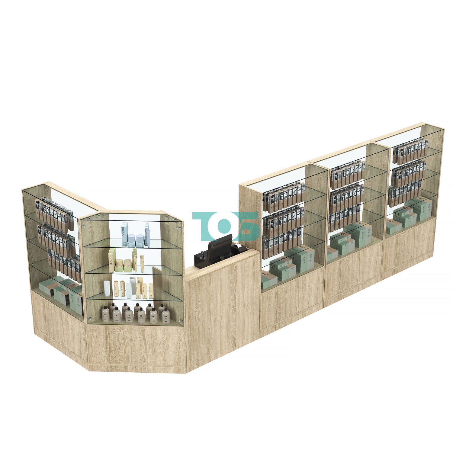 Стеллажи: за спиной продавца стоят стеллажи, которые можно доукомплектовать нижними дверцами на высоту 410 мм и 810 мм. Это расширяет возможности для организации хранения товаров.