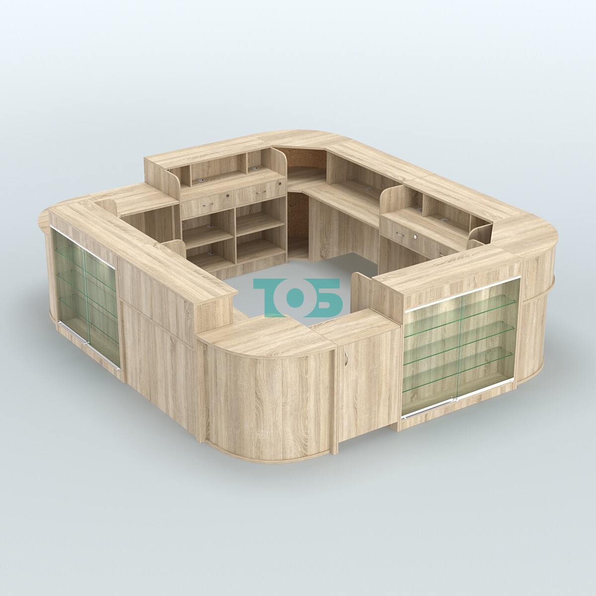 - состоит из четырех ресепшенов Лайт, двух стеклянных надставок для кондитерских изделий, четырех секторных ресепшенов, двух прямоугольных ресепшенов с надставками из ДСП, ресепшена под выдачу товара и секции вход-выход.