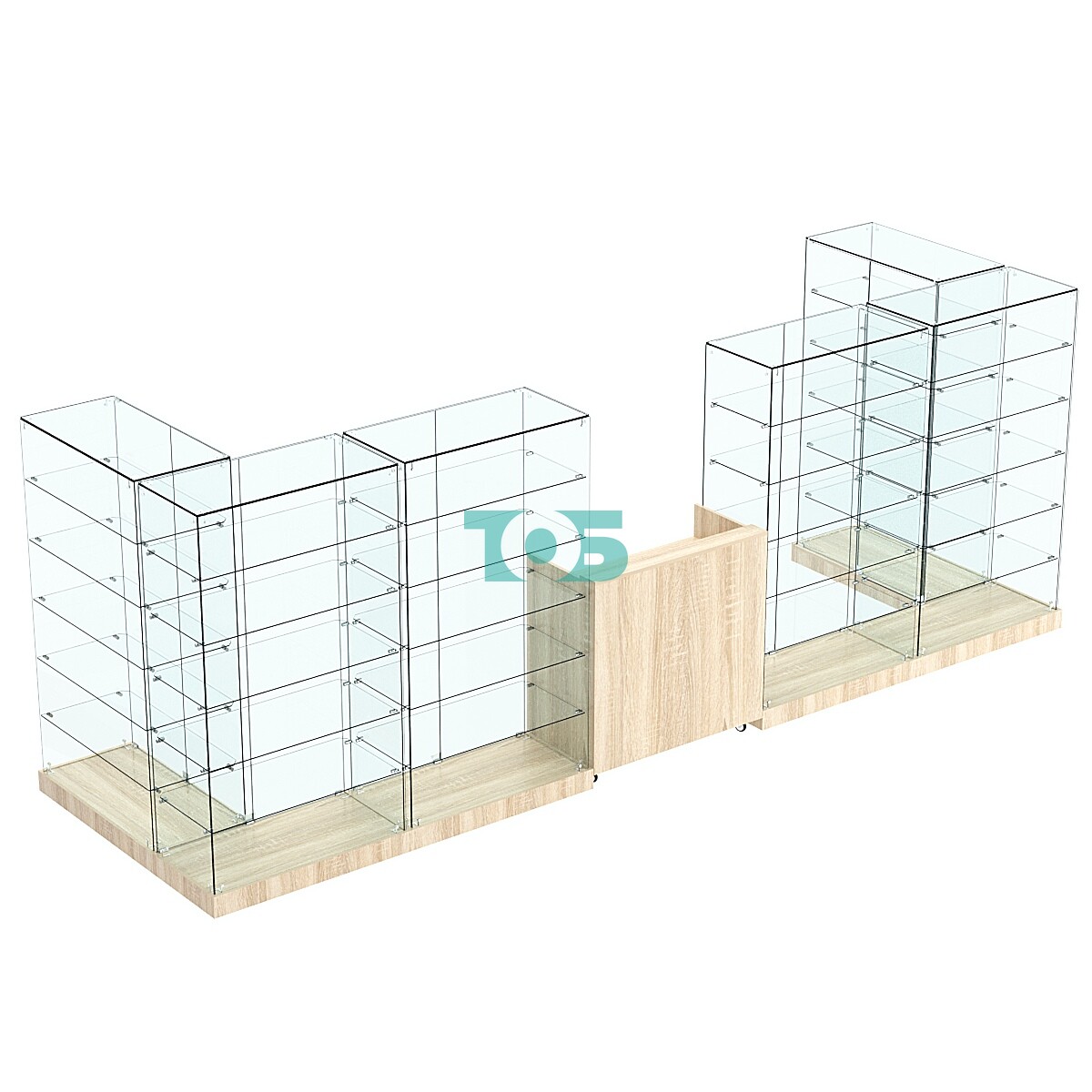 Габаритные размеры павильона могут быть изменены исходя из стандартных блоков витрин, что позволяет адаптировать островок под конкретные условия и требования.