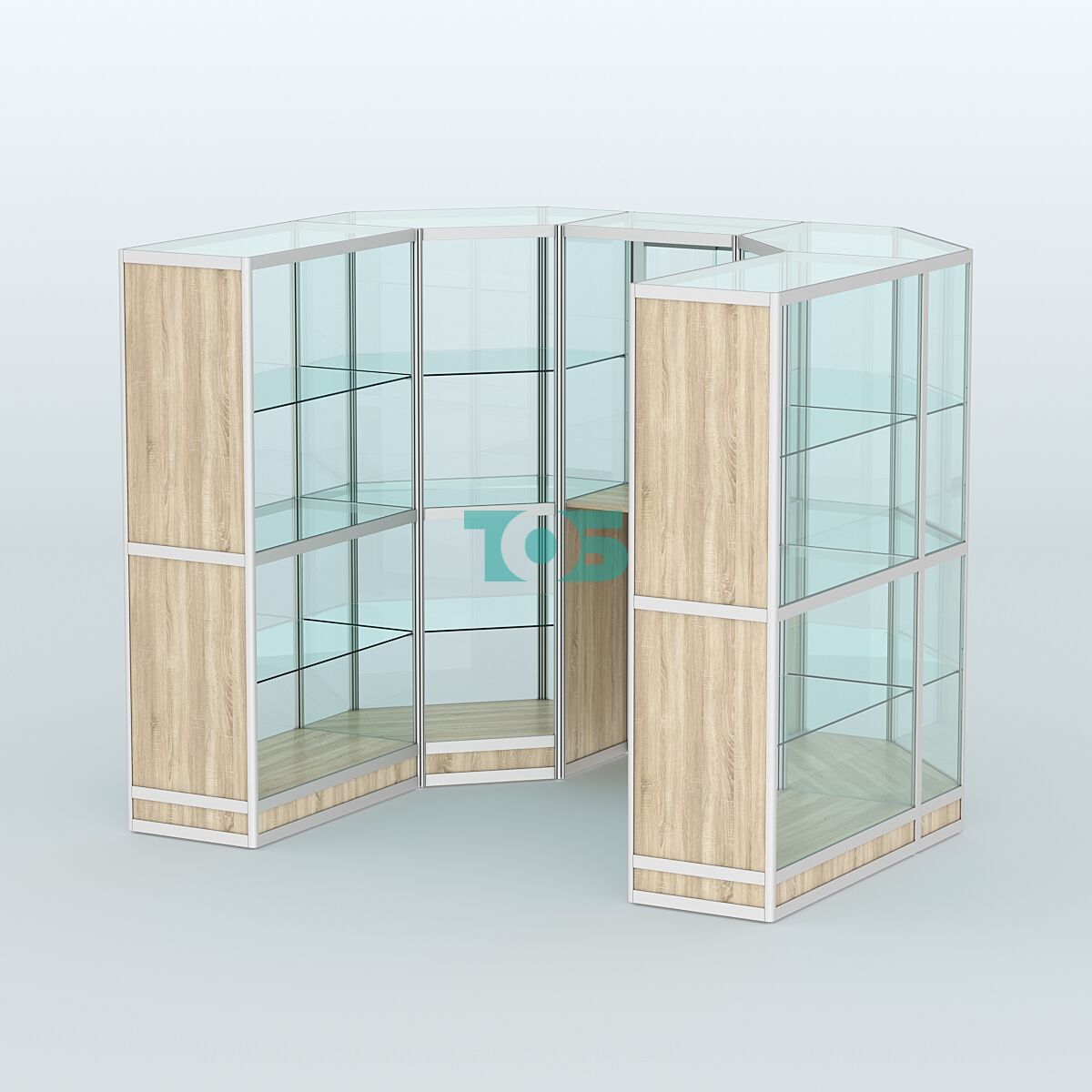 Полки: имеются по три стеклянные полки с каждой стороны, две из которых можно регулировать по высоте (кроме центральной полки), что позволяет адаптировать пространство под различные нужды.