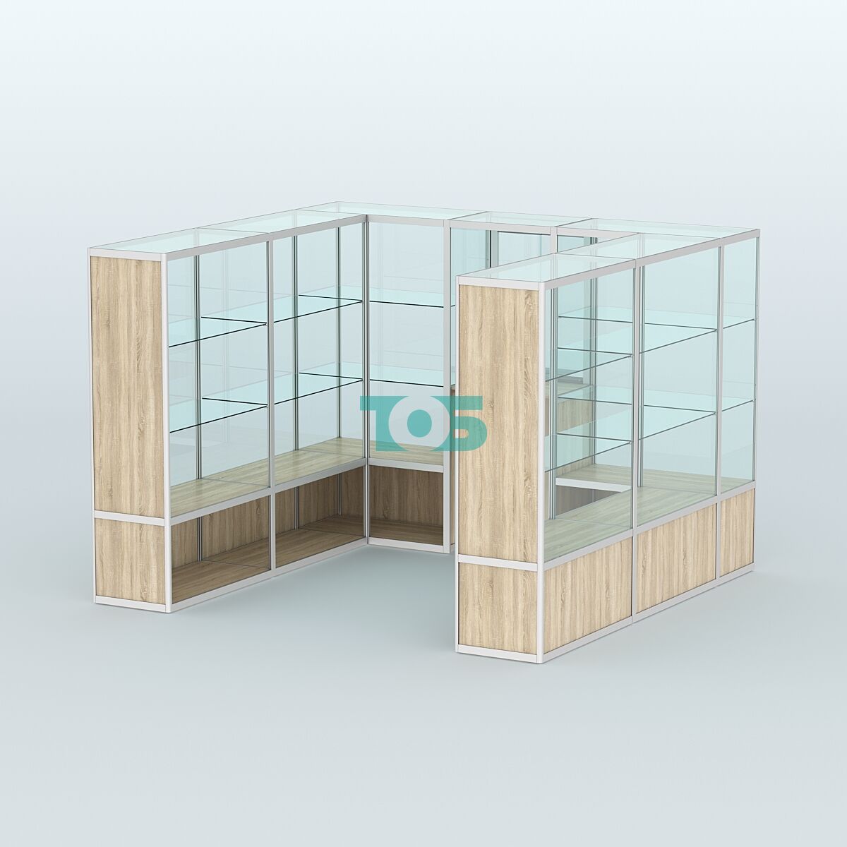 Полки: имеются по две стеклянные полки с каждой стороны, которые можно регулировать по высоте, что позволяет адаптировать пространство под различные нужды.