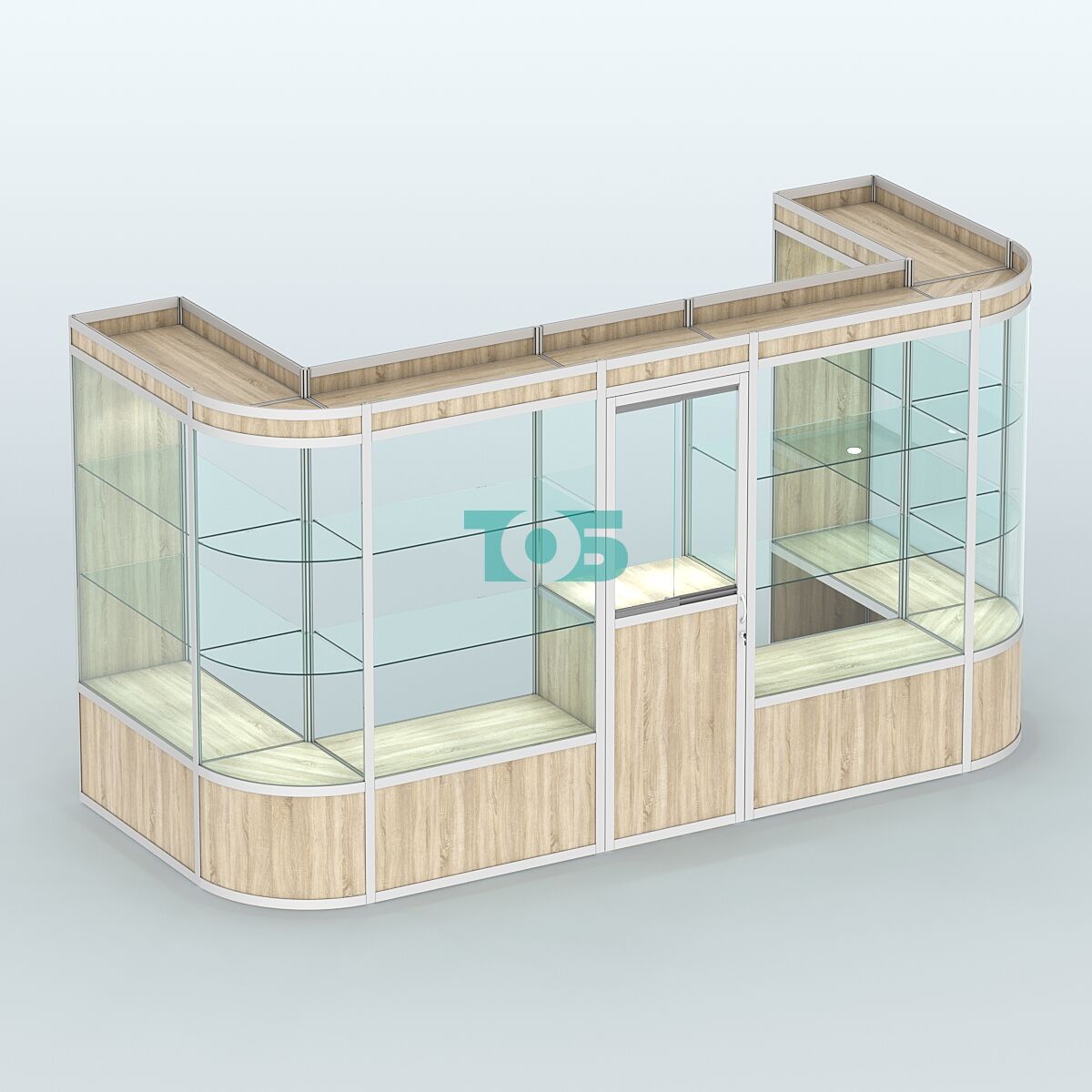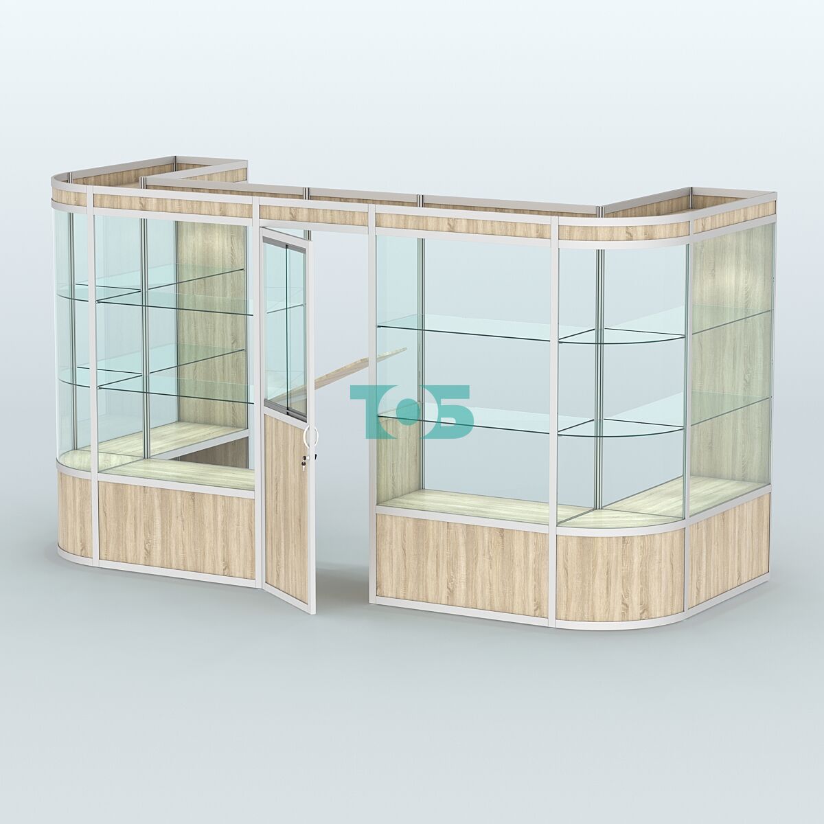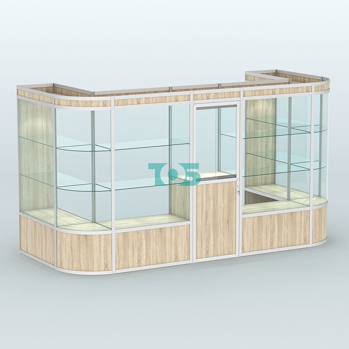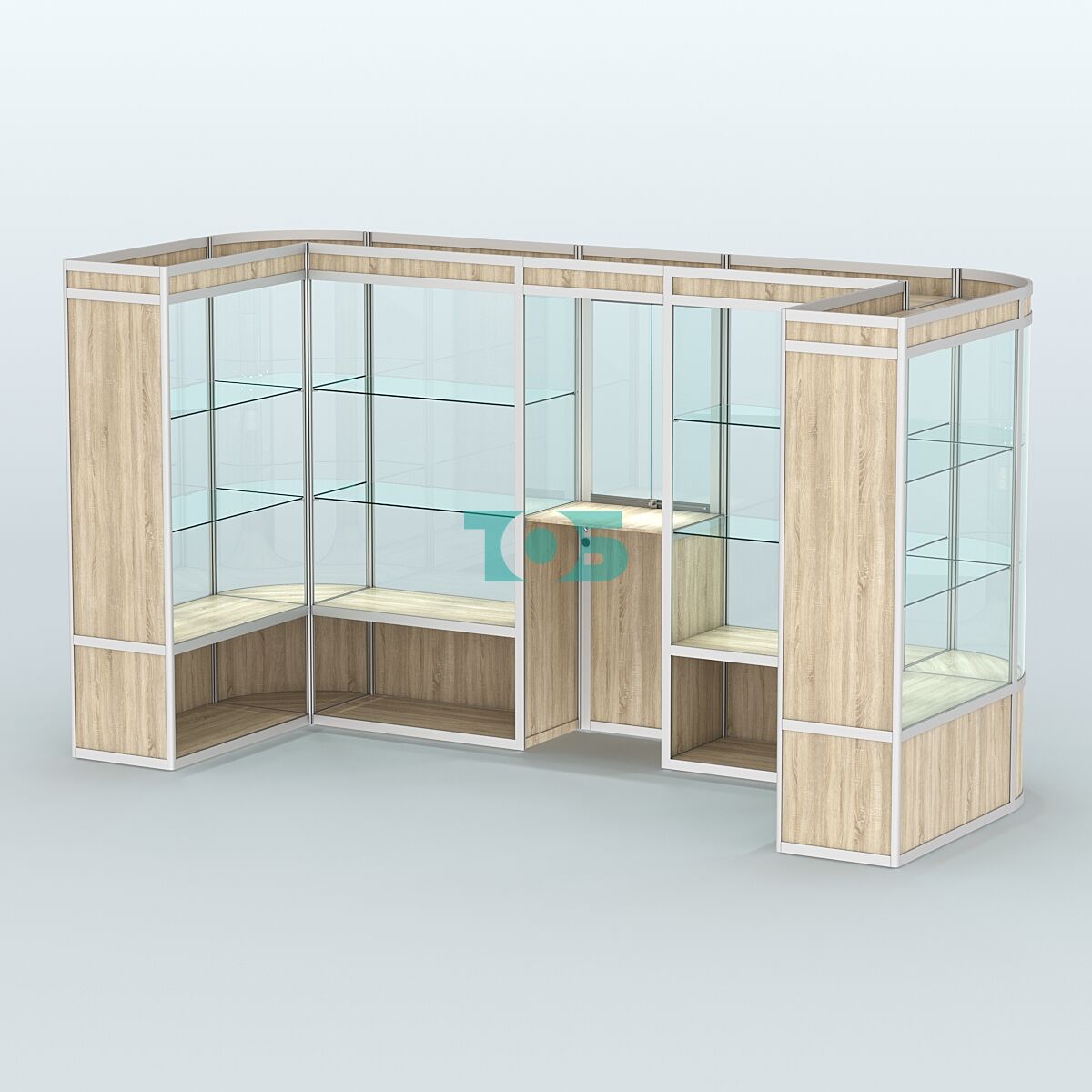 Полки: две стеклянные полки с каждой стороны, регулируемые по высоте, что позволяет адаптировать пространство под конкретные нужды.