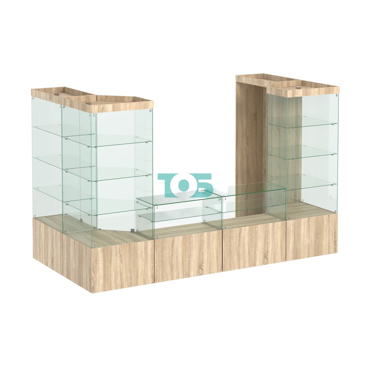 Гибкость размеров: габаритные размеры могут быть изменены в зависимости от стандартных блоков витрин, что позволяет адаптировать павильон под конкретные потребности и условия размещения.