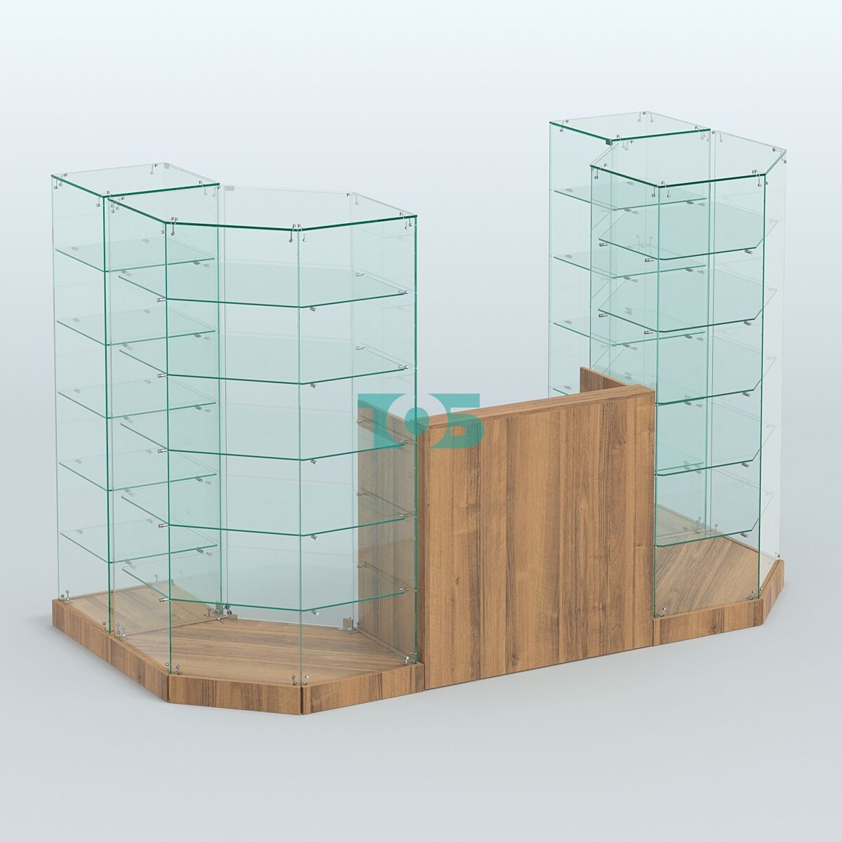 Прозрачность: торговый остров полностью выполнен из стекла, что создаёт ощущение лёгкости и простора.