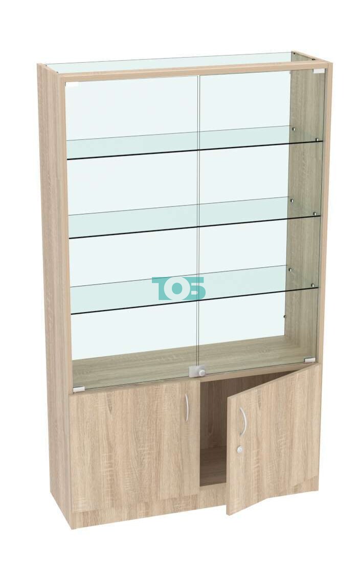 - прозрачная часть закрыта - распашными дверками с замком;