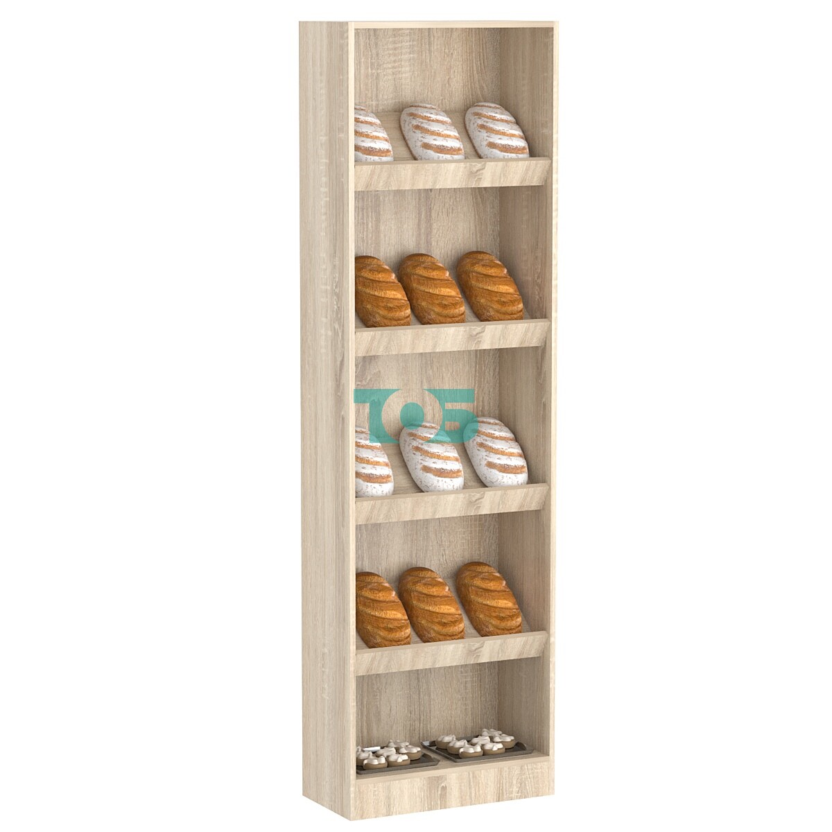 - три наклонных верхних полки с фасадными бортиками;