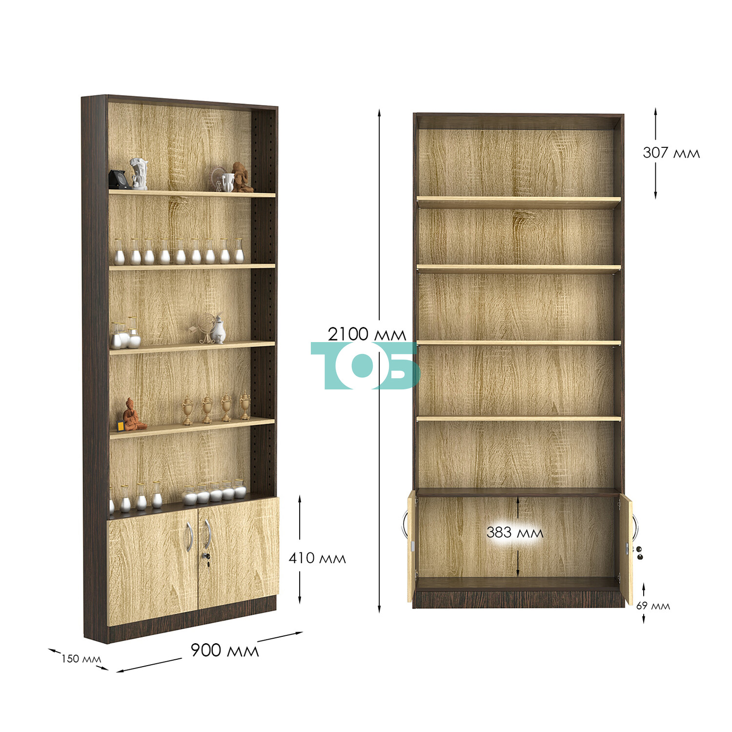 - нижний отсек закрыт распашными дверками с врезным замком (могут быть выполнены в разных цветах);