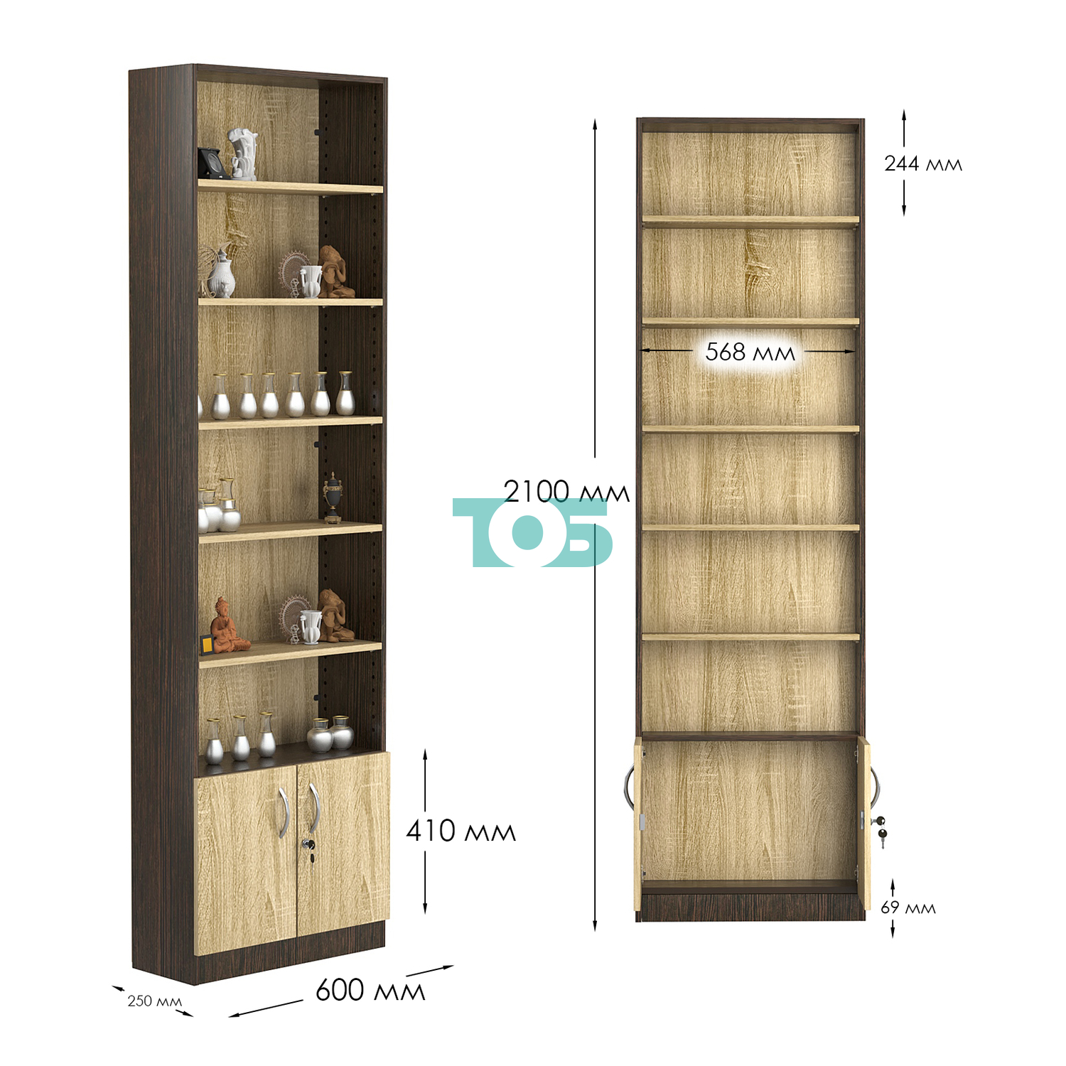 - нижний отсек закрыт распашными дверками с врезным замком;